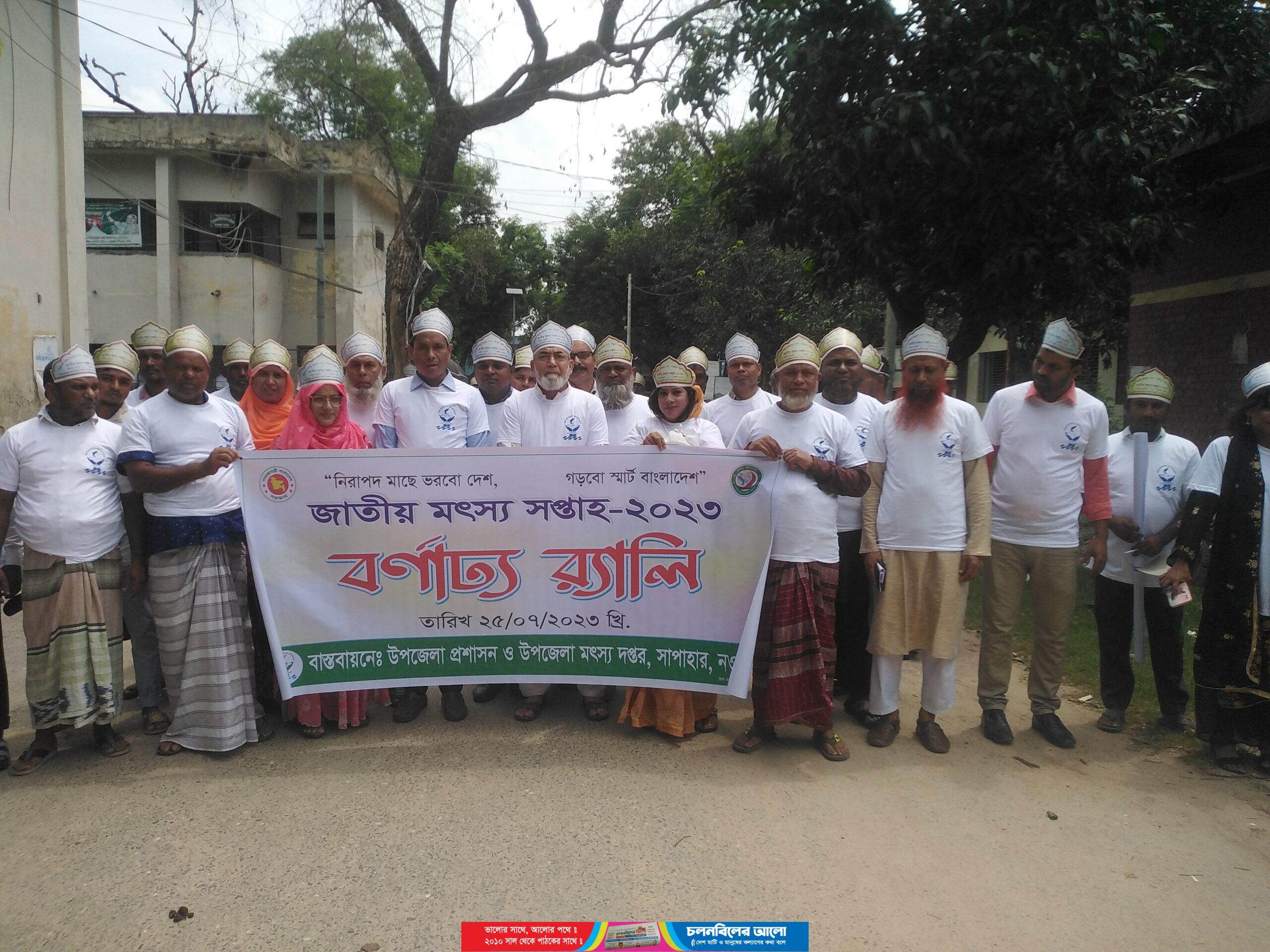 নিরাপদ মাছে ভরবো দেশ, গড়ব স্মার্ট বাংলাদেশ;-এই প্রতিপাদ্য বিষযকে সামনে রেখে নওগাঁর সাপাহারে জাতীয় মৎস্য সপ্তাহ উদযাপনের শুভ উদ্বোধন ঘোষণা করেন প্রধান অতিথি উপজেলা পরিষদ চেয়ারম্যান আলহাজ্ব শাহাজাহান হোসেন মন্ডল।