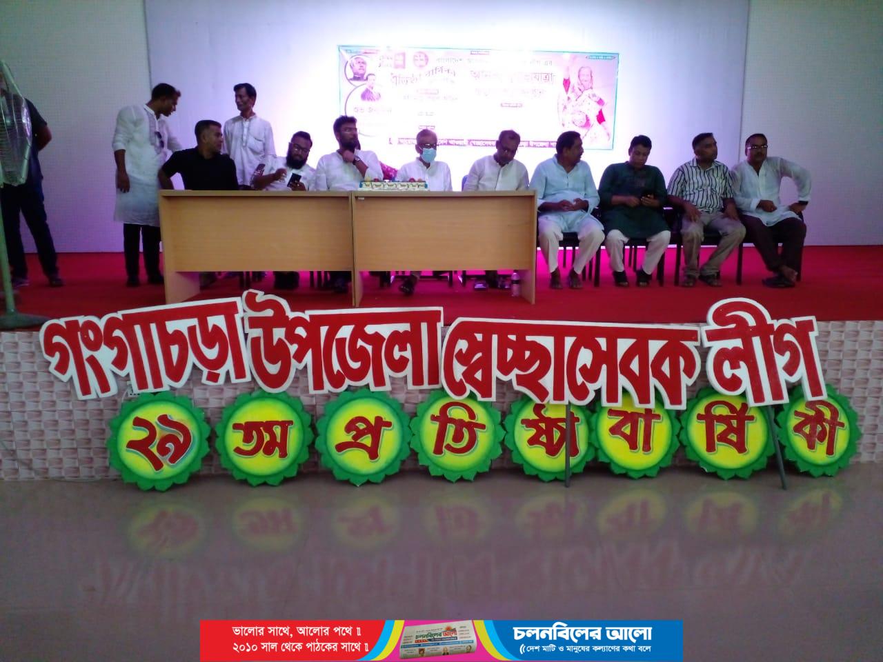 রংপুরের গঙ্গাচড়ায় উপজেলা সেচ্ছাসেবক লীগের ২৯ তম প্রতিষ্ঠা বার্ষিকী ও মাননীয় প্রধানমন্ত্রীর তথ্য প্রযুক্তি বিষয়ক উপদেষ্টা সজীব ওয়াজেদ জয় এর জন্মদিন পালন করা হয়। বৃহস্পতিবার (২৭ জুলাই) এ উপলক্ষে গঙ্গাচড়া উপজেলা আওয়ামী সেচ্ছাসেবক লীগের আয়োজনে আনন্দ শোভাযাত্রা সহ উপজেলা পরিষদ অডিটোরিয়ামে আলোচনা সভা ও কেক কেটে জন্মদিন পালন করা হয়েছে। উপজেলা আওয়ামী সেচ্ছাসেবক লীগের সভাপতি ইখলাস উদ্দিন লিখনের সভাপতিত্বে ও সাধারণ সম্পাদক মামুনুর রশীদের সঞ্চালনায় প্রধান অতিথি হিসেবে উপস্থিত ছিলেন উপজেলা আওয়ামী লীগের সভাপতি ও উপজেলা পরিষদের চেয়ারম্যান আলহাজ্ব রুহুল আমিন। বিশেষ অতিথি হিসেবে উপস্থিত ছিলেন উপজেলা আওয়ামী লীগের সাধারণ সম্পাদক আজিজুল ইসলাম, সহ-সভাপতি লিয়াকত আলী, জেলা স্বেচ্ছাসেবক লীগের যুগ্ম সাধারণ সম্পাদক মনির হোসেন ও সিরাজুল ইসলাম রবিন, সদর ইউনিয়ন চেয়ারম্যান মাজহারুল ইসলাম লেবু, বড়বিল ইউনিয়ন চেয়ারম্যান শহীদ চৌধুরী দ্বীপ। এসময় আরো উপস্থিত ছিলেন উপজেলা আওয়ামী লীগের যুগ্ম-সাধারণ সম্পাদক বুলবুল আহমেদ, সাংগঠনিক সম্পাদক আব্দুল আউয়াল পাভেল, জেলা জাতীয় শ্রমিক লীগের সদস্য সাইদুল ইসলাম টাইগার সহ বিভিন্ন ইউনিয়ন স্বেচ্ছাসেবক লীগের নেতৃবৃন্দ। আলোচনা সভায় বক্তাগণ প্রধানমন্ত্রী শেখ হাসিনার হাতকে শক্তিশালী করার জন্য সংগঠনকে শক্তিশালী করা এবং আগামী ২ আগস্ট রংপুরে প্রধানমন্ত্রীর সমাবেশকে সফল করার লক্ষে সকলের সহযোগিতা কামনা করেন।