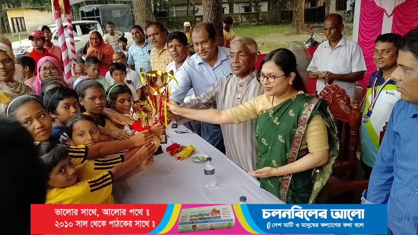 পঞ্চগড়ের আটোয়ারীতে উপজেলা পর্যায়ে বঙ্গবন্ধু গোল্ডকাপ প্রাথমিক বিদ্যালয় ফুটবল টুর্নামেন্ট (বালক) ও বঙ্গমাতা শেখ ফজিলাতুন্নেছা মুজিব গোল্ডকাপ প্রাথমিক বিদ্যালয় টুর্নামেন্ট (বালিকা) এর ফাইনাল খেলা অনুষ্ঠিত হয়েছে। বৃহস্পতিবার ( ৩ আগস্ট) বিকালে উপজেলা প্রশাসন ও উপজেলা শিক্ষা অফিসের উদ্যোগে আটোয়ারী মডেল পাইলট উচ্চ বিদ্যালয় মাঠে টুর্নামেন্ট দু’টি অনুষ্ঠিত হয়। বঙ্গবন্ধু গোল্ডকাপ প্রাথমিক বিদ্যালয় ফুটবল টুর্নামেন্টে ( বালক দল) আলোয়াখোয়া ইউনিয়নের ‘আলোয়াখোয়া সরকারি প্রাথমিক বিদ্যালয়’ ৪-০ গোলে মির্জাপুর ইউনিয়নের ‘মির্জাপুর সরকারি প্রাথমিক বিদ্যালয়’কে পরাজিত করেন এবং বঙ্গমাতা শেখ ফজিলাতুন্নেছা মুজিব গোল্ডকাপ প্রাথমিক বিদ্যালয় টুর্নামেন্টে (বালিকা দল) তোড়িয়া ইউনিয়নের ‘নিতুপাড়া সরকারি প্রাথমিক বিদ্যালয়’ ৫-০ গোলে ধামোর ইউনিয়নের ‘সরকার পাড়া সরকারি প্রাথমিক বিদ্যালয়’কে পরাজিত করেন। আলোয়াখোয়া সরকারি প্রাথমিক বিদ্যালয় (বালক) ও নিতুপাড়া সরকারি প্রাথমিক বিদ্যালয় (বালিকা) উপজেলা পর্যায়ে চ্যাম্পিয়ন হওয়ার গৌরব অর্জন করে। টুর্নামেন্ট শেষে সহকারী কমিশনার (ভূমি) শায়লা সাঈদ তন্বীর সভাপতিত্বে প্রধান অতিথির বক্তব্য রাখেন উপজেলা পরিষদ চেয়ারম্যান ও উপজেলা আওয়ামী লীগের সভাপতি মোঃ তৌহিদুল ইসলাম। অনুষ্ঠানে স্বাগত বক্তব্য রাখেন উপজেলা শিক্ষা অফিসার মোঃ মাসুদ হাসান। আলোচনা শেষে অতিথিবৃন্দ আনুষ্ঠানিকভাবে বিজয়ী ও বিজিত দলের মাঝে পুরস্কার বিতরণ করেন। এসময় বিভিন্ন সরকারি দপ্তরের কর্মকর্তা, জনপ্রতিনিধি, রাজনৈতিক দলের নেতৃবৃন্দ, বিভিন্ন সরকারি প্রাথমিক বিদ্যালয়ের প্রধান শিক্ষক ও সহকারী শিক্ষক, উপজেলা ক্রীড়া সংস্থার সাধারণ সম্পাদক, সাংবাদিক, এলাকার গণ্যমান্য ব্যাক্তিবর্গ ও বিভিন্ন শ্রেণি পেশার ফুটবল প্রেমি দর্শক উপস্থিত ছিলেন।