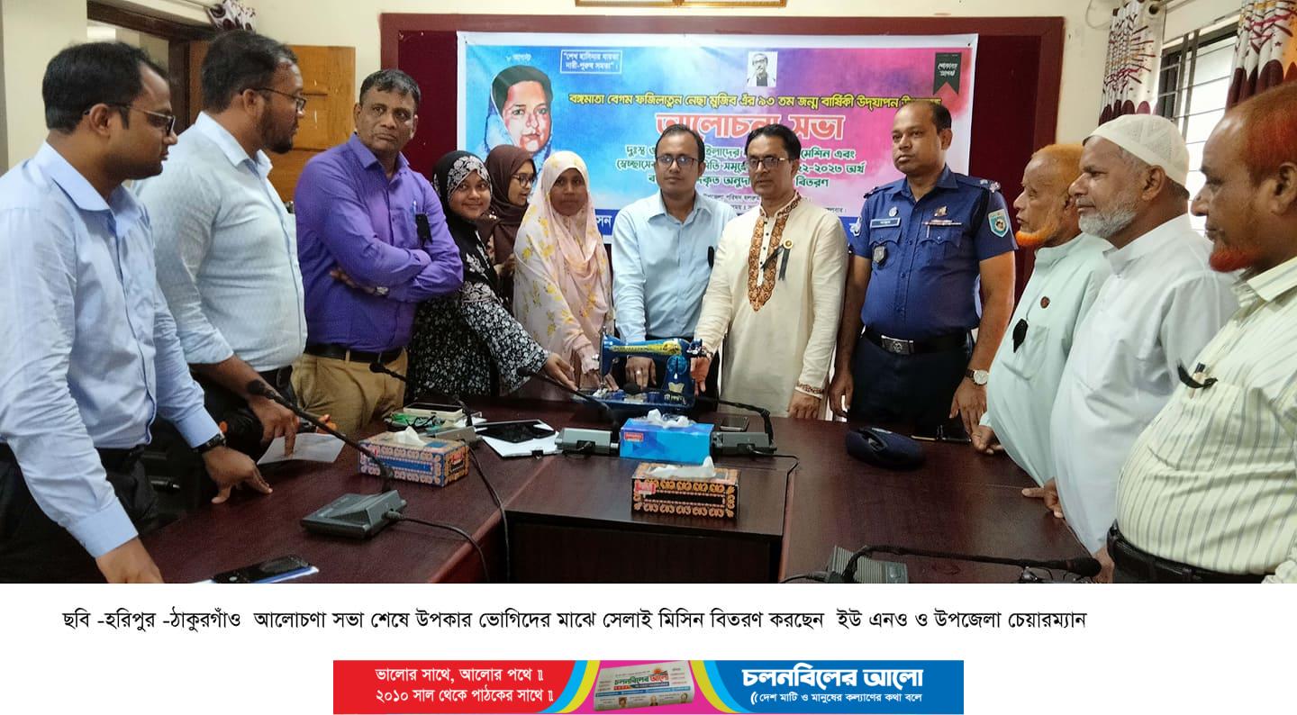 ঠাকুরগাঁওয়ের হরিপুরে উপজেলা প্রশাসন ও মহিলা বিষয়ক দপ্তরের আয়োজনে বঙ্গমাতা বেগম ফজিলাতুন নেছা মুজিবের ৯৩ তম জন্ম বার্ষিকী পালিত হয়েছে।