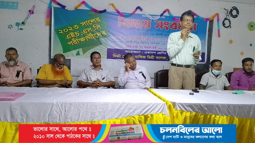 পঞ্চগড়ের আটোয়ারী ‘ মির্জা গোলাম হাফিজ ডিগ্রী কলেজের আসন্ন এইচএসসি পরীক্ষার্থীদের বিদায় সংবর্ধনা অনুষ্ঠিত হয়েছে। বুধবার ( ০৯ আগস্ট) মির্জা গোলাম হাফিজ ডিগ্রী কলেজের একাদশ শ্রেণির শিক্ষাথীদের আয়োজনে কলেজের দ্বিতীয় তলায় হলরুমে বিদায় সংবর্ধনা অনুষ্ঠিত হয়। এতে সভাপতিত্ব করেন মির্জা গোলাম হাফিজ ডিগ্রী কলেজের অধ্যক্ষ (ভারপ্রাপ্ত) কাজী ফজলে বারী সুজা। কলেজের বাংলা প্রভাষক মোঃ ওমর ফারুক এর সঞ্চালনায় বিদায়ী শিক্ষার্থীদের উদ্দেশ্যে অন্যদের মধ্যে বক্তব্য রাখেন,গভর্নিং বোডির সদস্য মোঃ ওয়াজেদ আলী, মোঃ ইয়াকুব আলী, শিক্ষক কাউন্সিলের সভাপতি মোঃ আব্দুল মোত্তালেব, সহকারী অধ্যাপক মোঃ ওয়াহেদুজ্জামান, গ্রন্থাগারিক নারায়ন চন্দ্র ঝাঁ, বিদায়ী পরীক্ষার্থীদের মধ্যে আবেগ আপ্লুত হয়ে বক্তব্য রাখেন, মোছাঃ মিতু আক্তার, প্রথম বর্ষের ছাত্রী মোছাঃ জান্নাতুন ফেরদৌস যুথি। অনুষ্ঠানের সভাপতি অধ্যক্ষ (ভা: প্রা:) কাজী ফজলে বারী সুজা বলেন, গত ৬বারে মির্জা গোলাম হাফিজ ডিগ্রী কলেজ পঞ্চগড় জেলার শেষ্ঠ কলেজ হিসেবে সুনাম অর্জন করেছে। এই সুনাম ভবিষ্যতে অক্ষুন্ন রাখার স্বার্থে শিক্ষার্থীদের ভুমিকাই বেশী। আলোচনা শেষে এইচএসসি নির্বাচনী পরীক্ষায় বিভিন্ন বিভাগে ( বিজ্ঞান,মানবিক ও বাণিজ্য) ১ম, ২য় ও ৩য় স্থান অধিকারী শিক্ষার্থীদের পুরস্কৃত করা হয়। একই সাথে একাদশ শ্রেণির ১ম সাময়ীক পরীক্ষায় বিভিন্ন বিভাগে ( বিজ্ঞান,মানবিক ও বাণিজ্য) ১ম, ২য় ও ৩য় স্থান অধিকারী শিক্ষার্থীদের পুরস্কৃত করা হয়। সবশেষে বার্ষিক ক্রীড়া প্রতিযোগিতায় বিভিন্ন ইভেন্টে বিজয়ী ১ম, ২য় ও ৩য় স্থান অধিকারীদের মাঝে সনদপত্র বিতরণ করা হয়। অনুষ্ঠানে কলেজের সকল শিক্ষক-শিক্ষার্থী-কর্মচারী,গভর্নিং বোডির সদস্যবৃন্দ,বিদায়ী শিক্ষার্থীবৃন্দ সহ গণমাধ্যমকর্মী উপস্থিত ছিলেন।