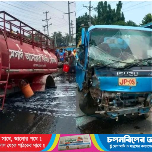 যশোর -খুলনা মহাসড়কে তেলবাহী ট্রাংকার ও পিকাপের ধাক্কায় আহত ১ ! ক্ষতি ৫ লাখ টাকা