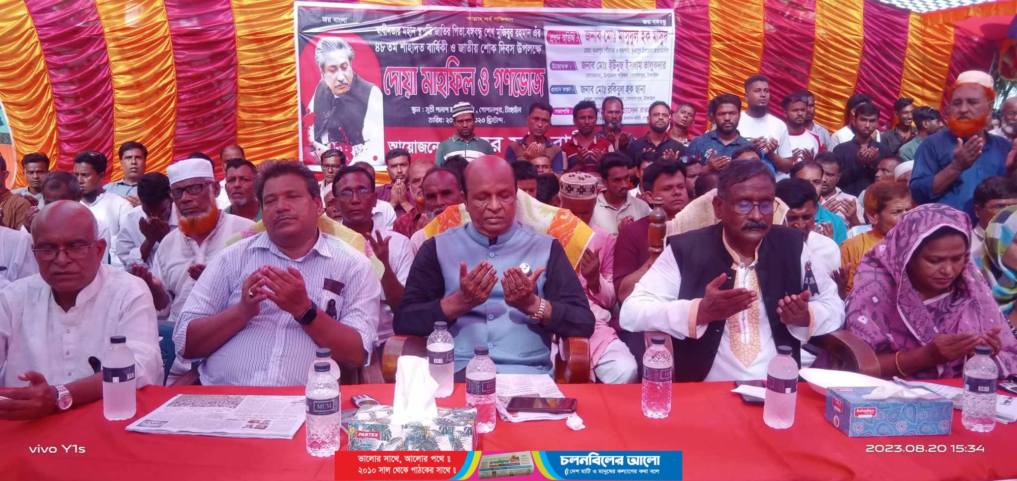 টাঙ্গাইলের গোপালপু‌রে স্বাধীনতার মহান স্থপতি বাঙালী জাতির জনক বঙ্গবন্ধু শেখ মুজিবুর রহমান এঁর ৪৮ তম শাহাদাত বার্ষিকী ও জাতীয় শোক দিবস উপলক্ষে দোয়া মাহফিল ও গণভোজের আয়োজন করা হ‌য়ে‌ছে।