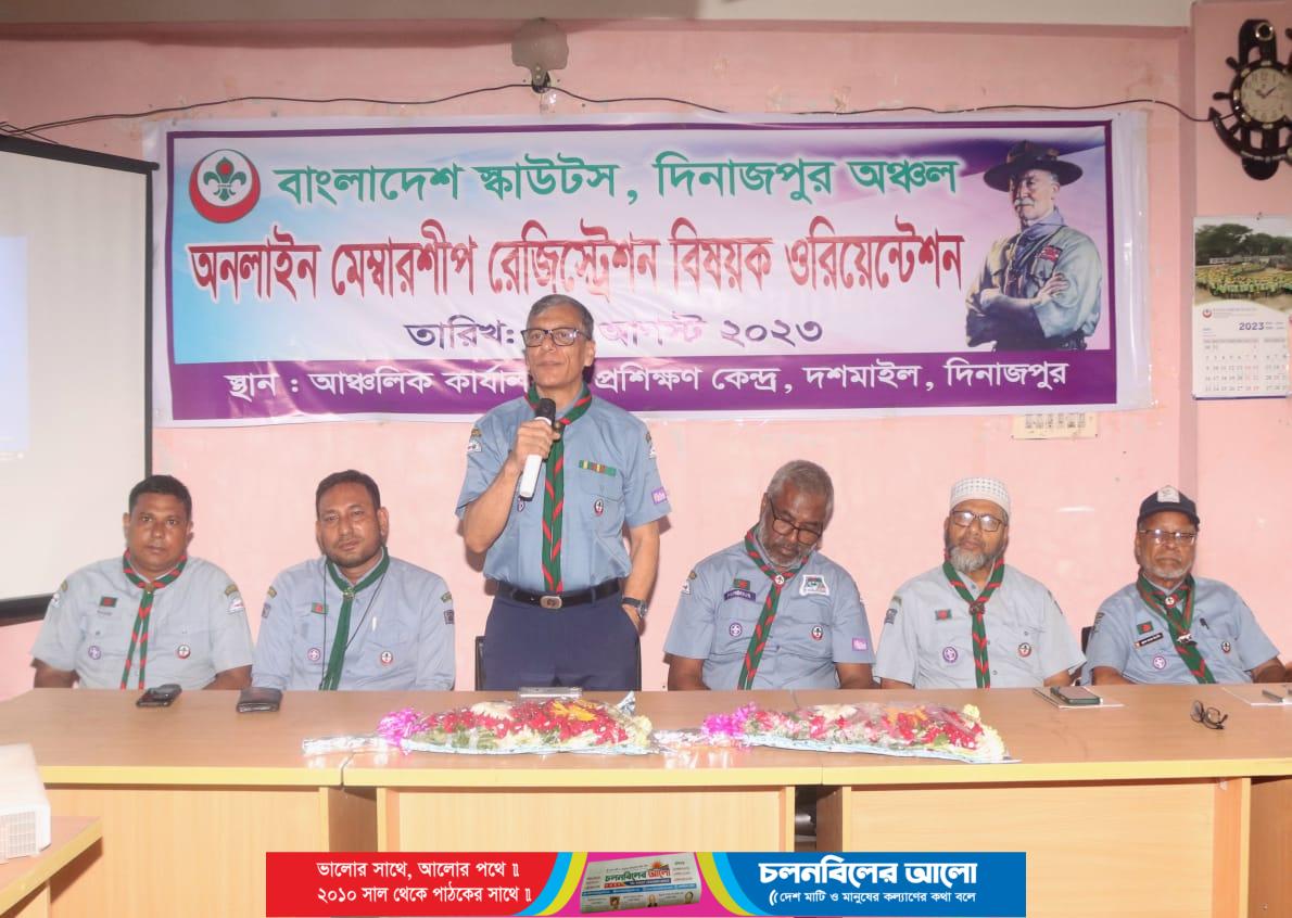 বাংলাদেশ স্কাউটস দিনাজপুর অঞ্চলের ব্যবস্থাপনায় দিনাজপুরের দশমাইলস্থ আঞ্চলিক স্কাউট অফিসে এআইএস ও মেম্বারশীপ রেজিষ্ট্রেশন ওয়ার্কশপ ২৬ আগষ্ট ২০২৩ শনিবার অনুষ্ঠিত হয়েছে। সকালে ওয়ার্কশপের উদ্বোধন করেন জাতীয় কমিশনার এডাল্ট ইন স্কাউটিং ( এআইএস) ফেরদৌস আহমেদ। সাবেক আঞ্চলিক কমিশনার মোঃ আখতারুজ্জামান, এএলটি এর সভাপতিত্বে উদ্বোধনী পর্বে আঞ্চলিক সম্পাদক মোঃ আবু সাঈদ, আঞ্চলিক উপ পরিচালক মোঃ আব্দুর রশিদ, আঞ্চলিক উপ কমিশনার (প্রশিক্ষণ ও (এআইএস) মুক্তালাল রায় ঈশোর, মেম্বারশীপ রেজিষ্ট্রেশন ও আইসিটি বিষয়ক আঞ্চলিক উপ কমিশনার মোঃ সিদ্দিকুর রহমান প্রমুখ বক্তব্য রাখেন। উদ্বোধনের পর সকালে মেম্বারশীপ রেজিষ্ট্রেশন বিষয়ক ওরিয়েন্টশনের বিভিন্ন সেশন উপস্থাপন করেন জাতীয় কমিশনার মেম্বারশীপ রেজিষ্ট্রেশন সৈয়দ রফিক আহমেদ ও সহকারী পরিচালক কাজী নাসির উদ্দিন। সেশনে অংশগ্রহণকারী জেলা উপজেলা এডমিন, জেলা সম্পাদকসহ জেলা ও উপজেলার স্কাউটারগণ হাতে কলমে অনুশীলন ও সুপারিশ তুলে ধরেন। মধ্যহ্নভোজের মাধ্যমে ওরিয়েন্টশন কার্যক্রম শেষ হয়। দুপুর ২ টায় শুরু হয় এডাল্ট ইন স্কাউটিং বিষয়ক ওয়ার্কশপ। ওয়ার্কশপে স্কাউট আন্দোলনে এডাল্ট লিডারদের ভূমিকা, তাদের নিয়োগ, কার্যপরিধি, সেফ ফর্ম হার্ম পলিসি ও আচরণ বিধিমালা বিষয়ে সেশন তুলে ধরেন আঞ্চলিক উপ কমিশনার স্কাউটার মুক্তলাল রায় ঈশোর, উপ পরিচালক আব্দুর রশিদ ও আব্দুল্লাহ আল মামুন। ওয়ার্কশপে জাতীয় কমিশনার ফেরদৌস আহমেদ উপস্থাপিত সেশনসমূহের বিষয়ে পর্যালোচনা ও অংশগ্রহণকারীদের মতামত গ্রহণ করেন।