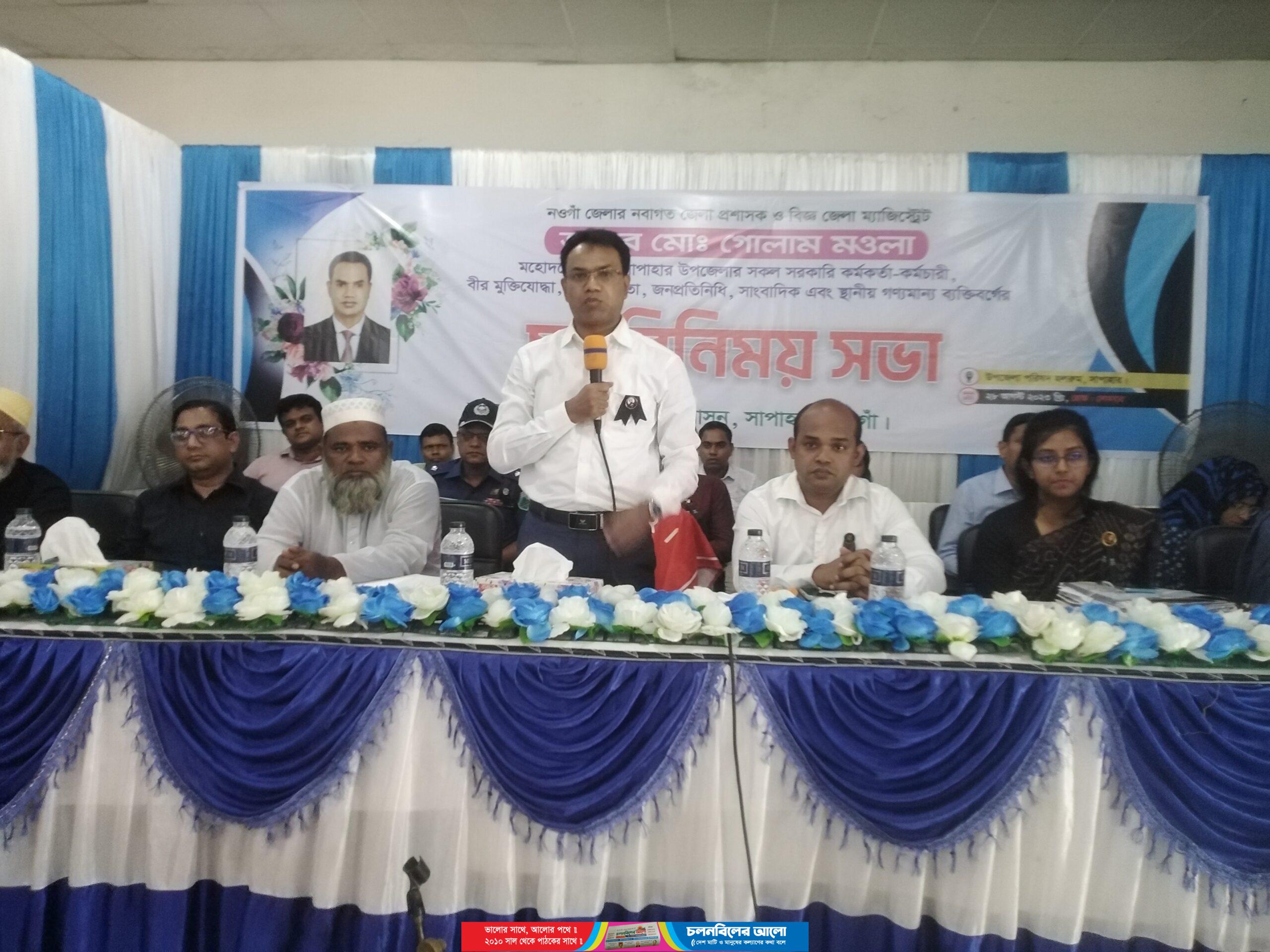 নওগাঁর সাপাহারে নবাগত জেলা প্রশাসক জনাব মোঃ গোলাম মওলা’র সাথে উপজেলার সকল কর্মকর্তা-কর্মচারী, সেবা গ্রহীতা, মুক্তিযোদ্ধা, জনপ্রতিনিধি, সাংবাদিক, শিক্ষা প্রতিষ্ঠান প্রধান, এনজিও প্রতিনিধি, বিভিন্ন সংগঠনের প্রধান, ও সুশীল সমাজের লোকজনের অংশগ্রহণে মতবিনিময় সভা অনুষ্ঠিত হয়েছে।