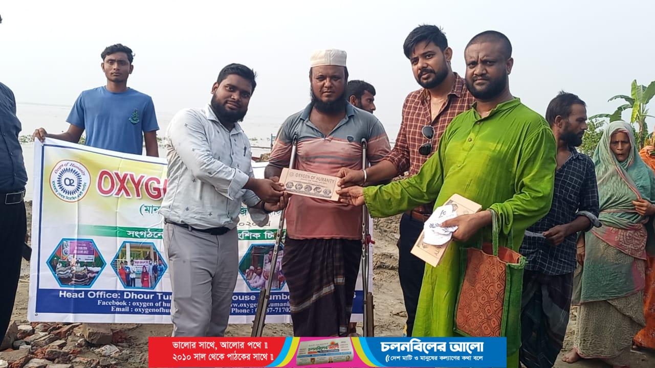 মুকতাদির হোমিও চিকিৎসা কেন্দ্রে ম্যানেজিং ডিরেক্টর ও সংগঠনের সহকারী সেক্রেটারি জেনারেল ডা.এম.এ.মান্নান এ-র সঞ্চালনায় প্রধান অতিথি হিসেবে উপস্থিত ছিলেন অত সংগঠনের সম্মানিত উপদেষ্টা ডেন্টিস্ট মোহাম্মদ ওয়াসিম আকরাম। প্রধান অতিথির বক্তব্যে তিনি বলেন,কোন মানুষ প্রাকৃতিক দুর্যোগ বা বিপদে পড়লে মানুষ হিসেবে তার পাশে দাঁড়ানো মানবিক ও নৈতিক দায়িত্ব।সামাজিক মূল্যবোধ ও নৈতিক দায়িত্ব থেকে সাধ্য অনুযায়ী অক্সিজেন ওফ হিউম্যানিটি মানুষের পাশে দাঁড়ানোর চেষ্টা করে।আজ আমরা ৫০ টি বসতবাড়ি হারা পরিবারের মাঝে খাদ্য সামগ্রী ও নগদ অর্থ বিতরণ করেছি।আমাদের এই কার্যক্রম অব্যাহত থাকবে,ইনশাআল্লাহ।