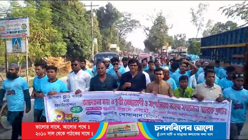 রক্তদাতাদের স্বেচ্ছাসেবী সংগঠন জাগরণ ব্লাড ব্যাংক এন্ড ফাউন্ডেশনের প্রথম বর্ষপূর্তি উপলক্ষে র্যালী, আলোচনা সভা অনুষ্ঠিত হয়েছে।