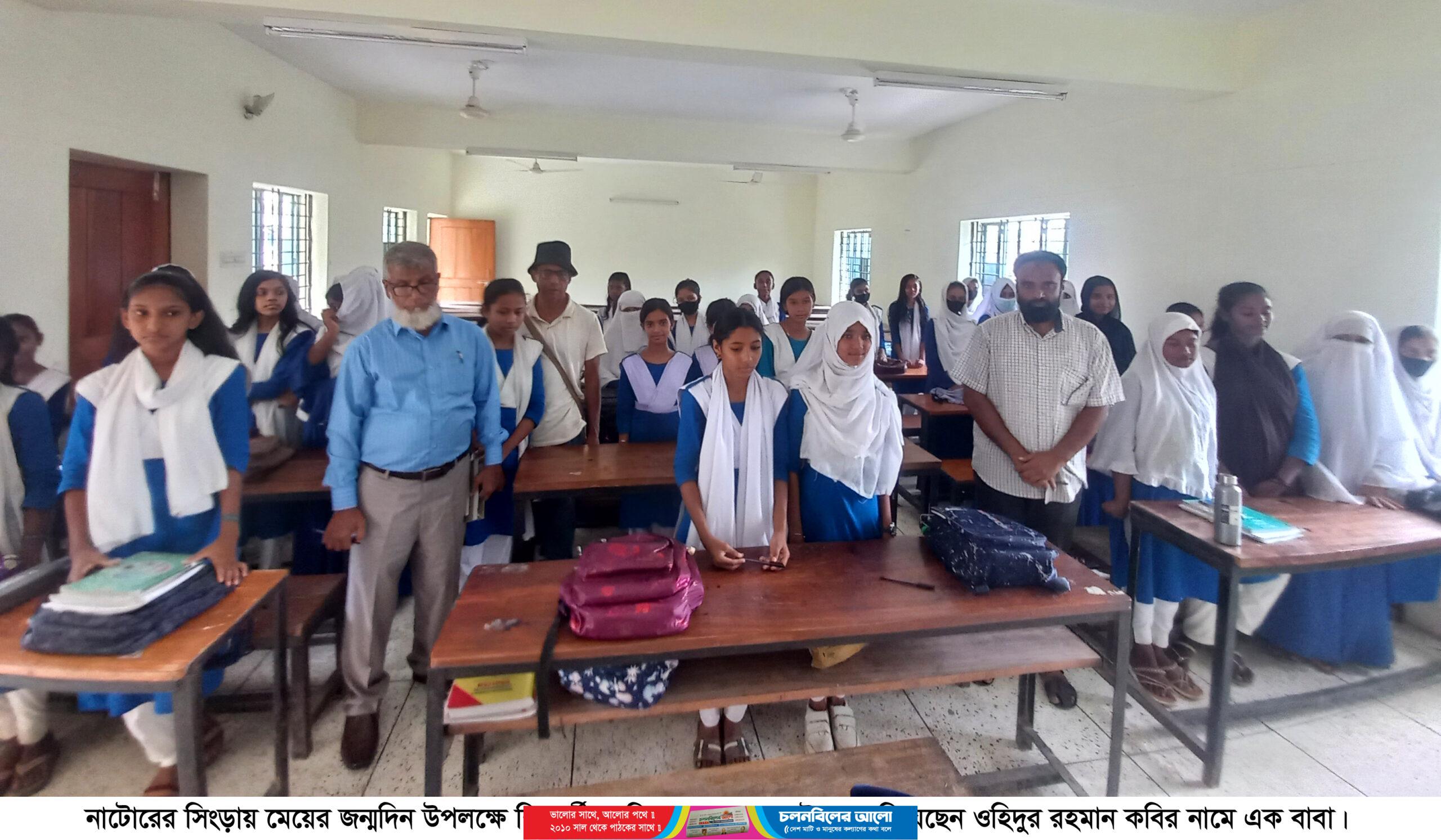 নাটোরের সিংড়ায় মেয়ের জন্মদিন উপলক্ষে শিক্ষার্থী ও শিক্ষকদের কলম উপহার দিয়েছেন ওহিদুর রহমান কবির নামে এক বাবা।