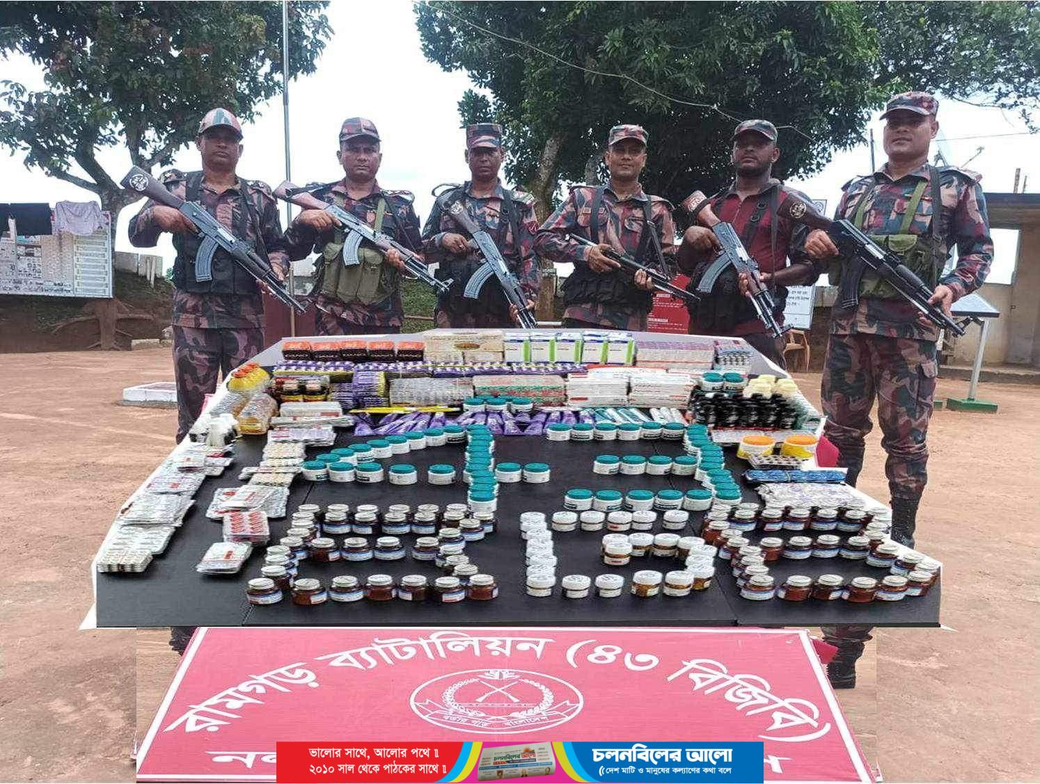 এরআগে গতকাল বুধবার সকালে রামগড় ব্যাটালিয়ন (৪৩ বিজিবি) এর অধীনস্থ চট্টগ্রাম জেলার ভূজপুর থানার চিতাখোলা নামক স্থান হতে মালিকবিহীন বিপুল পরিমাণ ভারতীয় ঔষধ এবং ১২ বোতল ভারতীয় মদ জব্দ করে বিজিবি।