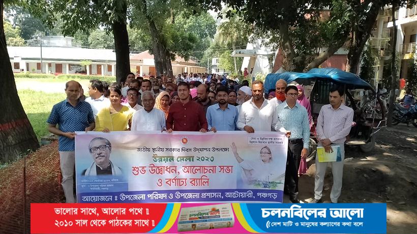 “ সেবা ও উন্নতির দক্ষ রূপকার- উন্নয়নে উদ্ভাবনে স্থানীয় সরকার” এই প্রতিপাদ্যকে সামনে রেখে সারাদেশের ন্যায় পঞ্চগড়ের আটোয়ারীতে জাতীয় সরকার দিবস-২০২৩ উদযাপন উপলক্ষে তিন দিনব্যাপী উন্নয়ন মেলার আনুষ্ঠানিক উদ্বোধন করা হয়েছে। মেলার উদ্বোধন করেন উপজেলা পরিষদ চেয়ারম্যান ও উপজেলা আওয়ামী লীগের সভাপতি মোঃ তৌহিদুল ইসলাম। উপজেলা পরিষদ ও উপজেলা প্রশাসনের আয়োজনে রবিবার ( ১৭ সেপ্টেম্বর) সকাল সাড়ে ১০ টায় উপজেলা পরিষদ চত্ত¡র থেকে একটি বণার্ঢ্য র্যালী বের হয়ে উপজেলার গুরুত্বপুর্ণ সড়ক প্রদক্ষিণ করে উপজেলা পরিষদ অডিটোরিয়ামের সামনে এসে শেষ হয়। পরে অডিটোরিয়ামে জাতীয় স্থানীয় সরকার দিবস উপলক্ষে আয়োজিত তিন দিনব্যাপী উন্নয়ন মেলার উদ্বোধন ঘোষনা করা হয়। উদ্বোধনী অনুষ্ঠানে আলহাজ¦ মোঃ রমজান আলী’র সঞ্চালনায় দিবসটির প্রতিপাদ্য বিষয়ের উপর গুরুত্বারোপ করে আরো বক্তব্য রাখেন,উপজেলা নির্বাহী অফিসার মোঃ মুসফিকুল আলম হালিম, মহিলা ভাইস চেয়ারম্যান রেনু একরাম, ওসি সোহেল রানা, উপজেলা প্রকৌশলী ( এলজিইডি) মোঃ ফয়সাল, উপজেলা কৃষি অফিসার কৃষিবিদ মোস্তাক আহম্মেদ, বীর মুক্তিযোদ্ধা আলহাজ¦ নজরুল ইসলাম,রাধানগর ইউপি চেয়ারম্যান আবু জাহেদ,বলরামপুর ইউপি চেয়ারম্যান আলহাজ¦ দেলোয়ার হোসেন, ধামোর ইউপি চেয়ারম্যান আবু তাহের দুলাল প্রমুখ। আলোচনা শেষে উন্নয়ন মেলার স্টলগুলো উপজেলা চেয়ারম্যান ও উপজেলা নির্বাহী অফিসার পরিদর্শন করেন। উপজেলা চেয়ারম্যান বলেন, উন্নয়ন মেলায় সরকারের গৃহিত উন্নয়ন কার্যক্রম প্রান্তিক জনগোষ্ঠীর মাঝে তুলে ধরা, জনগণকে উন্নয়ন কাজের সাথে সম্পৃক্ত করা, ভবিষ্যৎ কর্মপরিকল্পনা, এসডিজি অর্জনে সরকারের সাফল্য, এসডিজি কার্যক্রমে জনগণকে উদ্বুদ্ধকরণ, বিনিয়োগ পরিকল্পনা ও ব্যক্তিখাতে উদ্যোক্তা সৃস্টি এবং দক্ষতা উন্নয়নের লক্ষ্যে এই মেলার আয়োজন করা হয়। এছাড়া উপজেলার বিভিন্ন দপ্তরের দপ্তর প্রধানগণ, ইউপি চেয়ারম্যান সহ সদস্যবৃন্দ, শিক্ষা প্রতিষ্ঠানের শিক্ষক-শিক্ষার্থী, রাজননৈতিক দলের নেতৃবৃন্দ সহ সাংবাদিকবৃন্দ উপস্থিত ছিলেন।