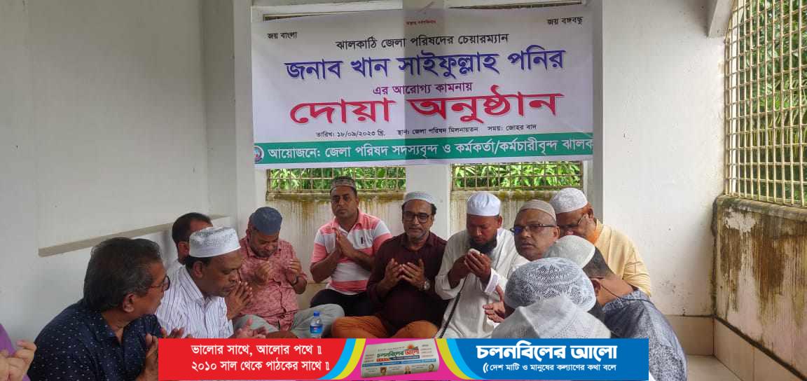 সোমবার (১৮ সেপ্টেম্বর) বাদ জোহর জেলা পরিষদ মিলনায়তনে দোয়া অনুষ্ঠিত হয়। এসময় জেলা পরিষদের প্যানেল চেয়ারম্যান সামসুল ইকরাম পিরু সহ ঝালকাঠি জেলা আওয়ামী লীগ ও বিভিন্ন উপজেলা আওয়ামী লীগ,ছাত্রলীগ,যুবলীগে,সেচ্ছাসে বক লীগ নেতৃবৃন্দ ও ইউনিয়ন পরিষদের চেয়ারম্যানগন উপস্থিত ছিলেন।
