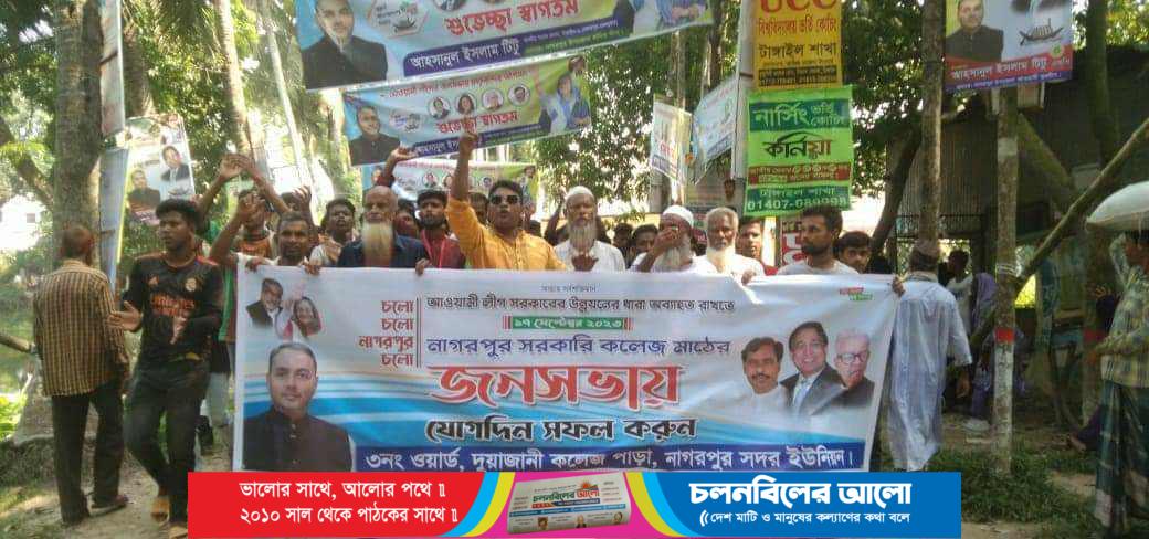রবিবার (১৭ সেপ্টেম্বর) বিকালে নাগরপুর সরকারি কলেজ মাঠ প্রাঙ্গনে উপজেলা আ.লীগের ব্যানারে এই জনসভার নাগরপুর-দেলদুয়ার দুটি উপজেলার ২০ টি ইউনিয়নের আ.লীগ অঙ্গ, সহযোগী ও ভ্রাতৃপ্রতিম সংগঠনের নেতাকর্মীরা দলে দলে মিছিল নিয়ে জনসভায় উপস্থিত হয়েছেন।এদিকে নাগরপুর উপজেলার প্রাণকেন্দ্রে অবস্থিত ঐতিহ্যবাহী দুয়াজানি  কলেজ পাড়ার পক্ষে এক বিশাল মিছিল নিয়ে নাগরপুর উপজেলা স্বেচ্ছাসেবক লীগ সাধারণ সম্পাদক মোঃ ফারুক হোসেনের নেতৃত্বে জনসভায় যোগদান করেছেন।