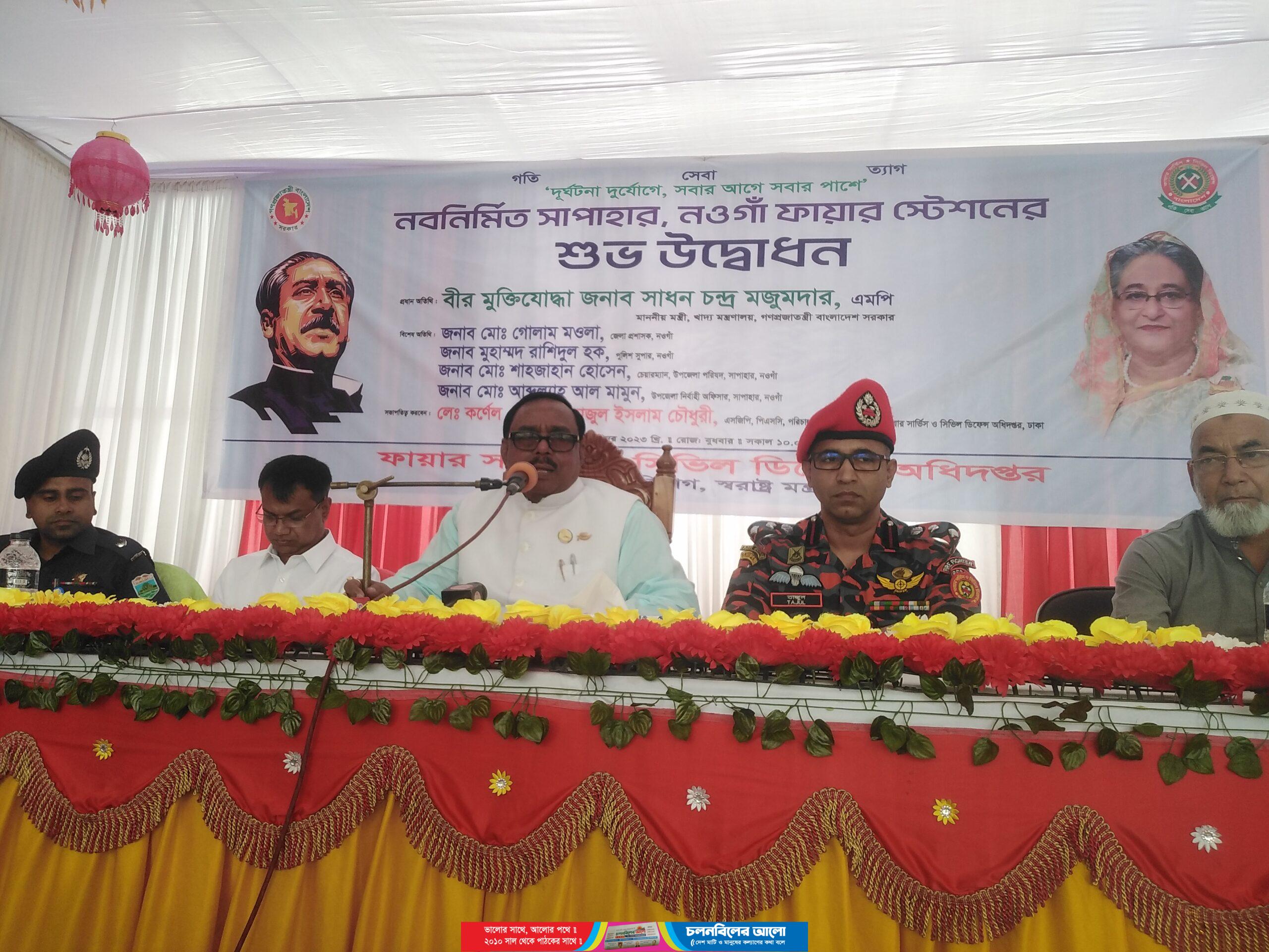 বুধবার সকাল ১০ টার দিকে ফায়ার সার্ভিস এন্ড সিভিল ডিফেন্স অধিদপ্তর সুরক্ষা সেবা বিভাগ স্বরাষ্ট্র মন্ত্রণালয় আয়োজিত উপজেলার গোডাউন পাড়া মোড় ফায়ার সার্ভিস’র নিজ কার্যালয়ে প্রধান অতিথি হিসেবে উপস্থিত থেকে শুভ উদ্বোধন করেন গণপ্রজাতন্ত্রী বাংলাদেশ সরকারের খাদ্যমন্ত্রী বীর মুক্তিযোদ্ধা জনাব সাধন চন্দ্র মজুমদার এমপি।