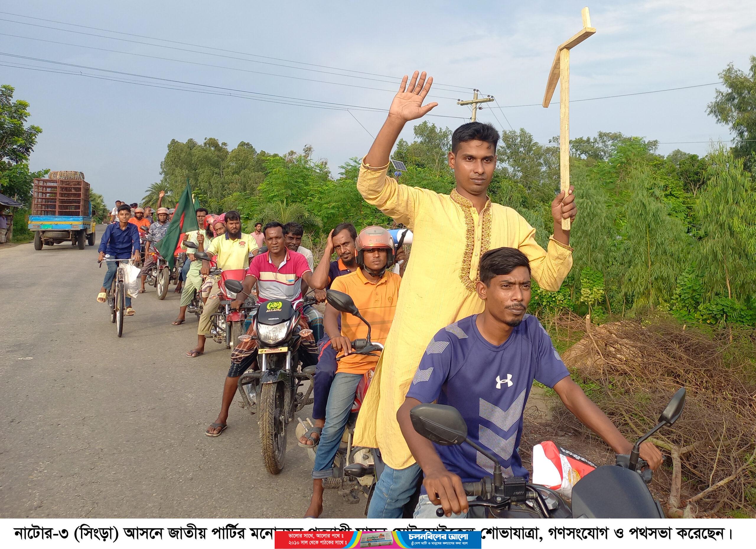 আসন্ন দ্বাদশ জাতীয় সংসদ নির্বাচনে নাটোর-৩ (সিংড়া) আসনে জাতীয় পার্টির মনোনয়ন প্রত্যাশী উপজেলা যুব সংহতির সাধারণ সম্পাদক সম্রাট হোসেন মামুন মোটরসাইকেল শোভাযাত্রা, গণসংযোগ ও পথসভা করেছেন।