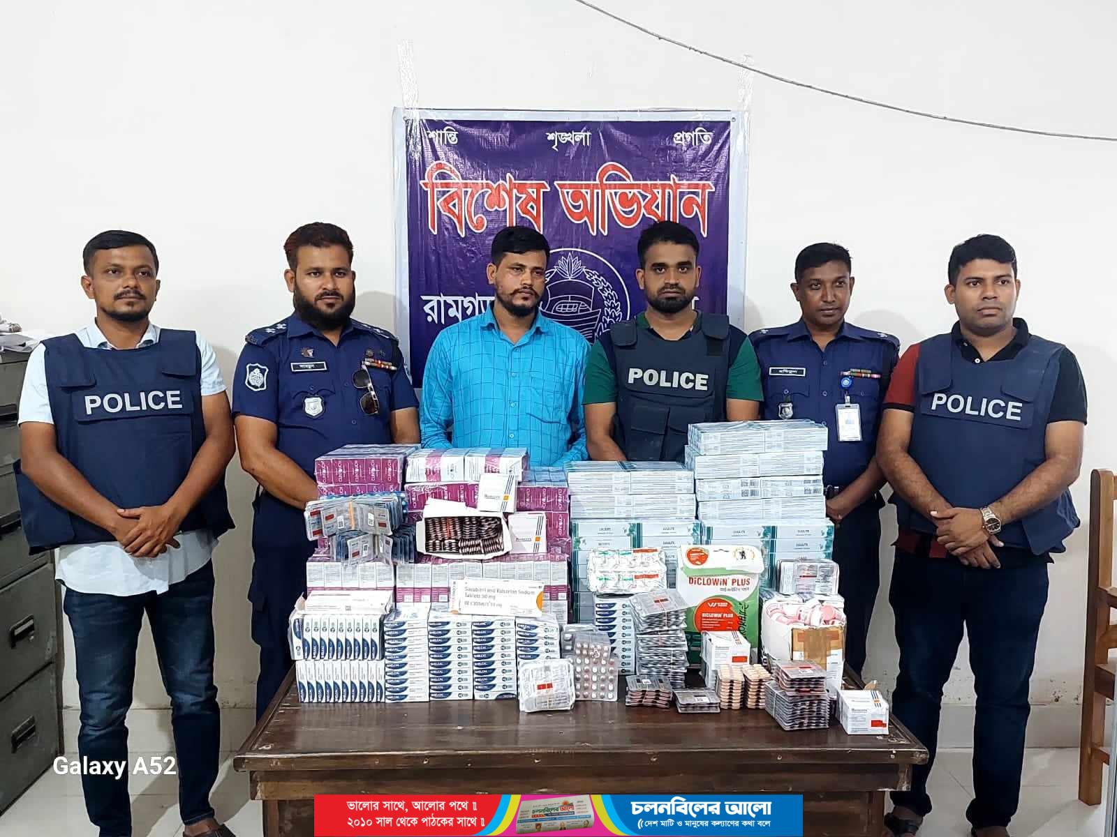 রামগড় থানা পুলিশ জানায়, গোপন সংবাদের ভিত্তিতে আসামীর গতি প্রকৃতি লক্ষ করে অভিযান পরিচালনা করা হয়।এসময় তার কক্ষ হতে ১৪ প্রকারের অবৈধ ভারতীয় ঔষুধ সহ আসামী মো:হানিফকে আটক করা হয়।জব্দকৃত ঔষুধের দাম ভারতীয় টাকায় দুই লক্ষ চুরাশি হাজার রুপি।