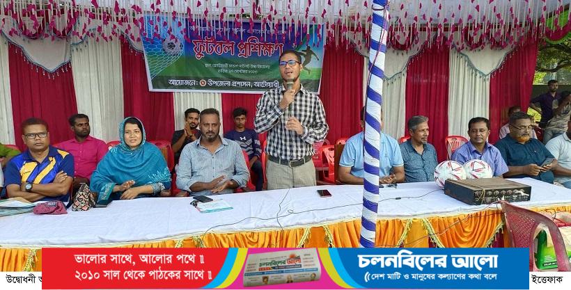 পঞ্চগড়ের আটোয়ারীতে উপজেলা ফুটবল একাডেমি গঠন করে ফুটবল প্রশিক্ষণের উদ্যোগ গ্রহণ করা হয়েছে । বুধবার (২৭ সেপ্টেম্বর) বিকালে আটোয়ারী উপজেলা প্রশাসনের আয়োজনে আটোয়ারী মডেল পাইলট উচ্চ বিদ্যালয় মাঠে ফুটবল প্রশিক্ষনের মধ্য দিয়ে নব গঠিত উপজেলা ফুটবল একাডেমির আনুষ্ঠানিক যাত্রা শুরু হয়। প্রায় সাড়ে তিনশত ক্ষুদে ফুটবলার বিভিন্ন শর্ত মেনে নিয়ে একাডেমির নির্ধারিত ফরম পুরণ করেছে। উদ্বোধনী অনুষ্ঠানে উপজেলা ফুটবল একাডেমির সভাপতি ও উপজেলা নির্বাহী অফিসার মোঃ মুসফিকুল আলম হালিম সভাপতিত্ব করেন এবং প্রশিক্ষনের শুভ উদ্বোধন ঘোষনা করেন। এসময় উপজেলা ক্রীড়া সংস্থার সাধারণ সম্পাদক ও উপজেলা ফুটবল একাডেমির পরিচালক মোঃ মিজানুর রহমানের সঞ্চালনায় একাডেমির সফলতা কামনা করে ক্ষুদে খেলোয়ারদের উদ্দেশ্যে বক্তব্য রাখেন, উপজেলা পরিষদের ভাইস চেয়ারম্যান মোঃ শাহাজাহান,মহিলা ভাইস চেয়ারম্যান রেনু একরাম, রাধানগর ইউপি চেয়ারম্যান মোঃ আবু জাহেদ, বোদা উপজেলা একাডেমির পরিচালক পরিচালক ও এফসি উত্তরবঙ্গের ম্যানেজার মোফাজ্জল হোসেন বিপুল, উপজেলা প্রেসক্লাবের সভাপতি মোঃ ইউসুফ আলী, আটোয়ারী প্রেসক্লাবের সভাপতি জিল্লুর হোসেন সরকার প্রমুখ । উপজেলা নির্বাহী অফিসার বলেন, আমাদের প্রায় অভিভাবকরা বাচ্চাদের চাপ দেন ক্লাসে ফার্স্ট হতে হবে। মেসি, রোনালদোরা ক্লাসে ফার্স্ট হননি, কিন্তু তারা বিশে^ সেরা। বাংলাদেশের সাকিব আল হাসানও ক্লাসে ফার্স্ট হননি। তিনি বলেন, আজ যারা এখানে এসেছে তারা একদিন জাতীয় দলে খেলবে। উপজেলা নির্বাহী অফিসার বলেন, উপজেলায় ভালো মানের ও মান সম্মত খেলোয়াড় তৈরি করাই আমাদের একমাত্র লক্ষ্য। আজ থেকে আনুষ্ঠানিকভাবে যাত্রা শুরু হলো আটোয়ারী উপজেলা ফুটবল একাডেমির।। বোদা উপজেলা ফুটবল একাডেমির পরিচালক মোফাজ্জল হোসন বিপুল জানান, ১০-১৪, ১৫-১৮ এবং ১৯-২২ বছর বয়সী ছেলে ও মেয়েদেরকে নিয়ে ৩ টি করে মোট ৬ টি টিম গঠন করা হবে। শুক্রবার ছাড়া প্রতিদিন প্রশিক্ষণ চলবে।