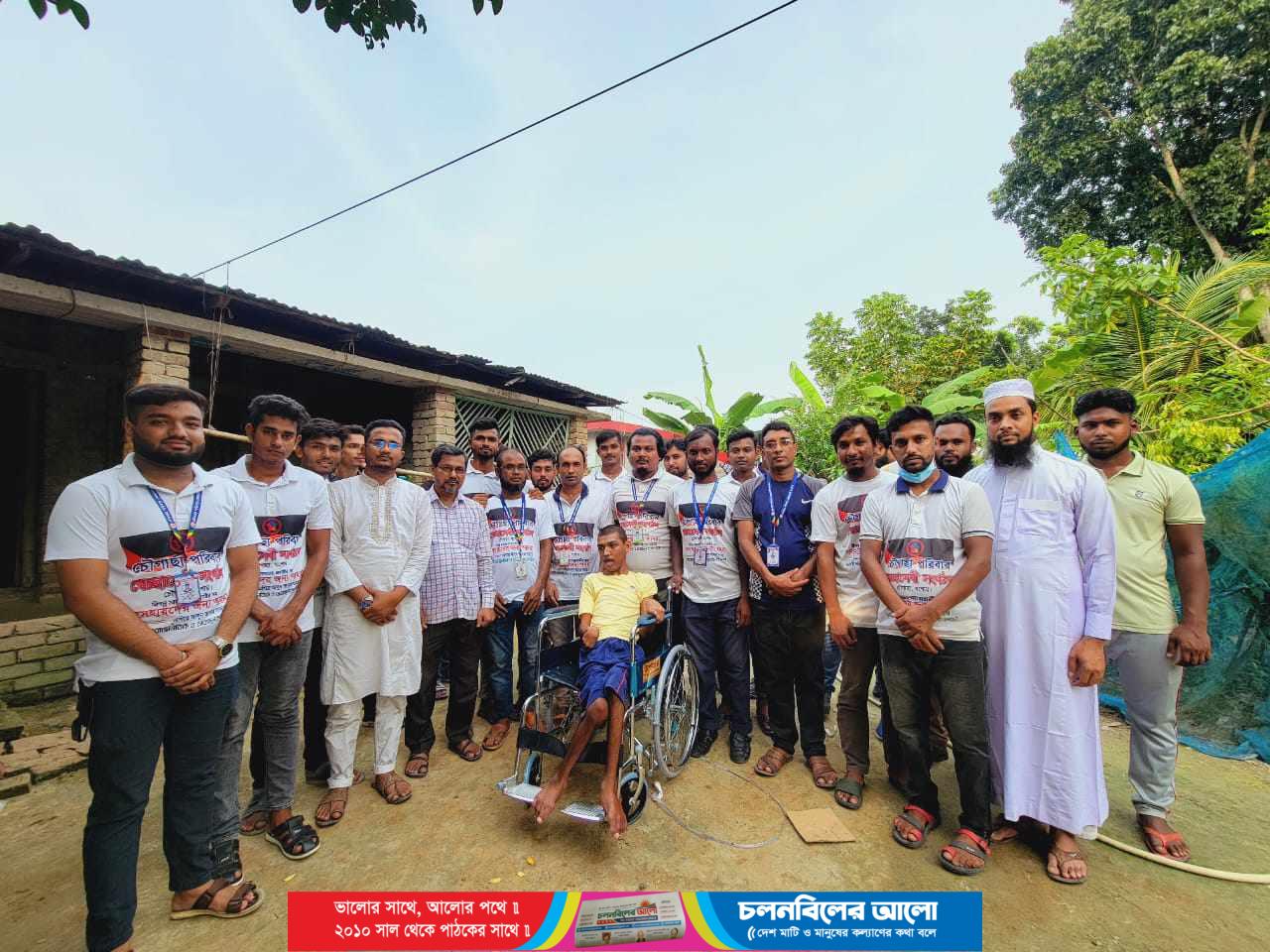 জানা গেছে মোঃ সিরাজ গোল্দারের ছেলে জন্মগত প্রতিবন্ধী মোঃ সাকিব, জন্মের পর থেকেই বিছানায় শুয়ে থাকেন। তার বাবা নিজে একটা হুইলচেয়ার কেনার সক্ষমতা না থাকাই তিনি ‘চৌগাছা পরিবার’ স্বেচ্ছাসেবী সংগঠনের মাধ্যমে তার চলাফেরার সুবিধার্থে একটি হুইল চেয়ারের জন্য আবেদন করেন। সংগঠনের প্রতিষ্ঠাতা সভাপতি সিঙ্গাপুর প্রবাসী জনাব মোঃ বখতিয়ার হোসেনের দিক-নির্দেশনায় সংগঠনের সকল সদস্যের বিচার-বিবেচনায় সম্মতি হয়ে এই হুইল চেয়ার প্রদান করা হয়।