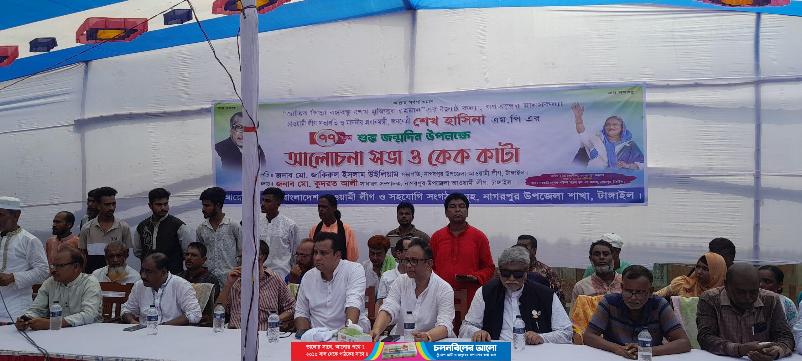 টাঙ্গাইলের নাগরপুরে “জাতির পিতা বঙ্গবন্ধু শেখ মুজিবুর রহমান” এর জ্যৈষ্ঠ কন্যা, গণতন্ত্রের মানসকন্যা বাংলাদেশ আওয়ামী লীগের সভানেত্রী ও প্রধানমন্ত্রী জননেত্রী শেখ হাসিনার ৭৭ তম জম্মদিন উপলক্ষে র্যালী ও আলোচনা সভা অনুষ্ঠিত হয়েছে।