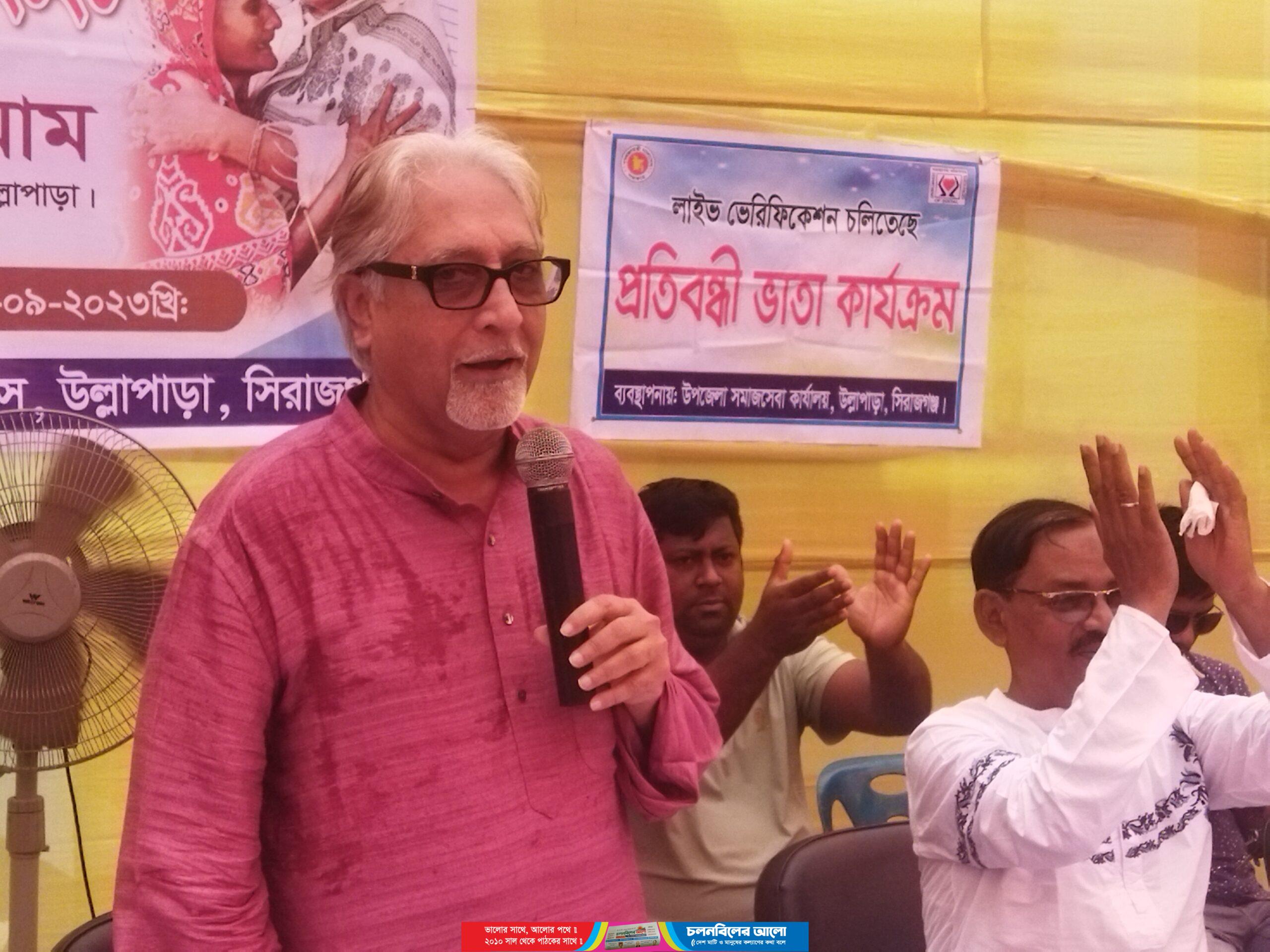উপজেলা প্রশাসন ও উপজেল সমাজসেবা অধিদপ্তরের আয়োজনে সকাল সাড়ে দশটায় পৌরসভা ও সদর উল্লাপাড়া ইউনিয়নের উপকারভোগী বয়স্ক, বিধবা ও প্রতিবন্ধীদের উপস্থিতিতে এ অনুষ্ঠানে প্রধান অতিথি হয়ে উপস্থিত ছিলেন জাতীয় সংসদ সদস্য তানভীর ইমাম।