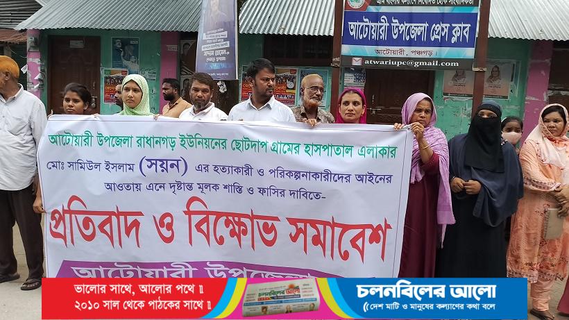 আটোয়ারীতে ‘ সয়ন ’ হত্যার প্রতিবাদে গ্রেফতার সহ ফাঁসির দাবীতে বিক্ষোভ সমাবেশ