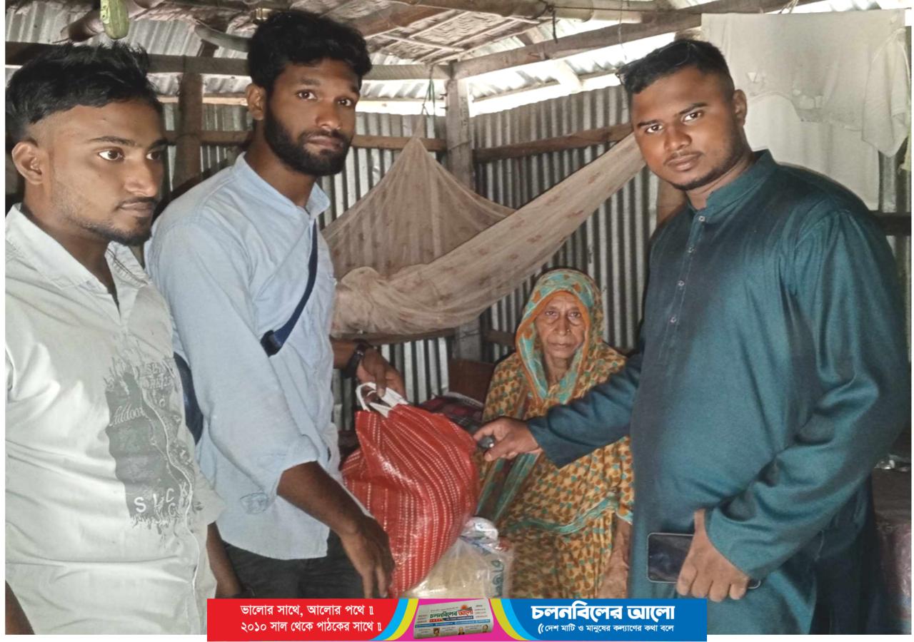 শনিবার (৭ অক্টোবর ২০২৩)  সকালে তার গ্রামের বাড়িতে গিয়ে চাল, ডাল,তৈল,আলু,লবন, পৌছে দেন সংগঠনের সদস্যরা।