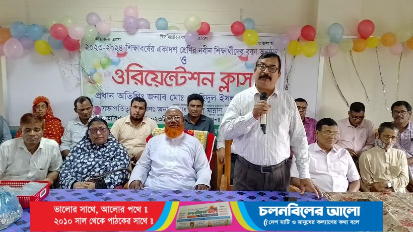 পঞ্চগড়ের আটোয়ারী আদর্শ মহিলা ডিগ্রি কলেজের একাদশ শ্রেণির ২০২৩-২৪ শিক্ষাবর্ষের নবীন শিক্ষার্থীদের ওরিয়েন্টেশন ক্লাসের মাধ্যমে বরণ করে নেওয়া হয়েছে। রবিবার ( ০৮ অক্টোবর) সকাল ১০টা থেকে দুপুর ২টা পর্যন্ত কলেজের সম্মেলন কক্ষে বিজ্ঞান, মানবিক ও ব্যবসা শাখার তিনটি বিভাগের একযোগে এই ওরিয়েন্টেশন ক্লাস অনুষ্ঠিত হয়। ওরিয়েন্টেশন ক্লাসের শিক্ষার্থীদের স্বাগত জানান প্রতিষ্ঠানের অধ্যক্ষ ও অনুষ্ঠানের সভাপতি মোঃ আব্দুল মান্নান। অনুষ্ঠানের শুরুতেই সকল নবাগত শিক্ষার্থীদের লাল গোলাপ দিয়ে বরণ করা হয়। কলেজের বাংলা প্রভাষক ও শিক্ষার্থী ভর্তি কমিটির আহবায়ক মোঃ ইয়াবুর রহমানের সঞ্চালনায় নবাগত শিক্ষার্থীদের উদ্দেশ্যে উপদেশ ও পরামর্শমুলক বক্তব্য রাখেন, হিসাব বিজ্ঞান প্রভাষক অভিনাশ চন্দ্র বর্মন, ইসলামিক শিক্ষা প্রভাষক আ.ন.ম ওবায়দুল্লাহ, ইসলামের ইতিহাস প্রভাষক রেহানা আখতার, অর্থনীতি প্রভাষক আশরাফুল ইসলাম, আইসিটি প্রভাষক আসাদ রহমান, আটোয়ারী উপজেলা প্রেস ক্লাবের সভাপতি মোঃ ইউসুফ আলী প্রমুখ। সরেজমিনে দেখা যায়, ওরিয়েন্টেশন ক্লাস উপলক্ষে ক্যাম্পাস জুড়েই ছিলো সাজ সাজ রব। নবীন শিক্ষাথীদের পদচারণায় মুখরিত ছিল ক্যাম্পাস প্রাঙ্গণ। কলেজের সম্মেলন কক্ষ সাজানো হয়েছিল বেলুন ও ব্যানার দিয়ে। শিক্ষার্থীরাও ছিলেন বেশ উচ্ছ¡সিত। বক্তরা নবাগত শিক্ষার্থীদের উদ্দেশ্যে বলেন, আটোয়ারী আদর্শ মহিলা ডিগ্রি কলেজ একটি ঐতিহ্যবাহী ও স্বনামধন্য শিক্ষা প্রতিষ্ঠান। পড়ালেখায় নিজেকে ভালো রেখে প্রাতিষ্ঠানিক শিক্ষার পাশাপাশি নৈতিকতাপূর্ণ ও মানবিক সমাজ ব্যবস্থা সৃষ্টির লক্ষ্যে এবং সুশিক্ষিথ জাতি গঠনে তোমাদের গুরুত্বপূর্ণ ভুমিকা রাখতে হবে। এজন্য তোমাদের অনেক কিছু ত্যাগ করে লেখাপড়ায় মনোযোগী হতে হবে। নিয়ম-শৃক্সখলা মেনে নিয়মিত প্রতিষ্ঠানে আসতে হবে। আগামী দিনের দেশ ও জাতির স্বপ্ন বাস্তবায়নের রূপকার হবে তোমরাই। জানাগেছে, একই সময়ে উপজেলার মির্জা গোলাম হাফিজ ডিগ্রি কলেজের একাদশ শ্রেণির নবীণ শিক্ষার্থীদের বরণ অনুষ্ঠান ও ওরিয়েন্টেশন ক্লাস ওই কলেজের অধ্যক্ষ (ভারপ্রাপ্ত) কাজী ফজলে বারী সুজা’র সভাপতিত্বে অনুষ্ঠিত হয়েছে।