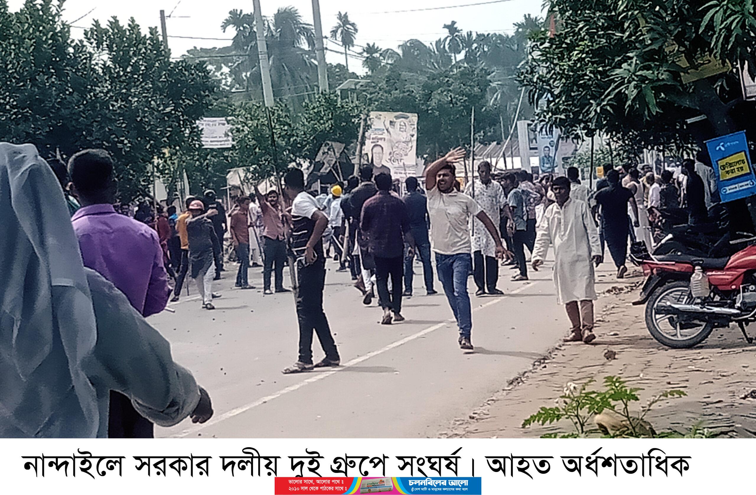 ময়মনসিংহের নান্দাইল উপজেলা পরিষদ হল রুমে যুবলীগ, স্বেচ্ছাসেবকলীগ ও ছাত্রলীগের কমিটির আয়োজনে সোমবার (৯ অক্টোবর) ৩শত নেতাকর্মীদের সমন্বয়ে নির্বাচনী ওরিয়েন্টেশন কর্মশালার আয়োজন করা হয়। উক্ত ওরিয়েন্টেশনে প্রধান আলোচক হিসাবে উপস্থিত থাকার কথা ছিল বাংলাদেশ আওয়ামীলীগের নির্বাচন পরিচালনা কমিটির প্রধান সমন্বয় কবির বিন আনোয়ার ও অনুষ্ঠানের উদ্ভোধক ছিলেন স্থানীয় এমপি আনোয়ারুল আবেদীন খান তুহিন। অনুষ্ঠান শুরুর কিছুক্ষণ পূর্বে উপজেলা আওয়ামীলীগের নেতাকর্মীরা উক্ত অনুষ্ঠানস্থলে এসে উপজেলা আওয়ামীলীগের অংশ গ্রহন করা নিয়ে কথার কাটাকাটির এক পর্যায়ে ঝগড়া সৃষ্টি হয়। এই নিয়ে উভয় গ্রুপের লোকজনদের দাওয়া-পাল্টা দাওয়া প্রায় ২ঘন্টা পর্যন্ত অব্যাহত থাকে। এতে করে ময়মনসিংহ-কিশোরগঞ্জ হাইওয়ে রোডে সকল প্রকার যান চলাচল প্রায় ২ঘন্টা পর্যন্ত অস্বাভাবিক থাকে। পরে পরিস্থিতি নিয়ন্ত্রণে আনতে অতিরিক্ত পুলিশ সুপার গৌরিপুর সার্কেল মোহাম্মদ সুমন মিয়ার নেতৃত্বে নান্দাইল মডেল থানা ও হাইওয়ে থানা পুলিশের তৎপরতায় পরিস্থিতি নিয়ন্ত্রণে আনতে বেশ কয়েকটি টিআরস্যাল নিক্ষেপ করেন। সংঘর্ষকারীদের ছত্রভঙ্গ করে দিয়ে পরিস্থিতি নিয়ন্ত্রণে আনতে সক্ষম হয়। পুলিশের টিয়ারস্যাল নিক্ষেপে নান্দাইল পাইলট উচ্চ বালিকা বিদ্যালয়ের ৫জন ছাত্রী আহত হয়েছে। উত্তেজিত আওয়ামীলীগের নেতাকর্মীরা উপজেলা হলরুমে প্রবেশ করে হলরুম ও হলরুমের সামনে থাকা কিছুসংখ্যক মোটরসাইকেল ভাংচুর করে। উক্ত সংঘর্ষে প্রায় উভয় পক্ষের অর্ধশতাধিক নেতাকর্মী আহত হয়েছে। আহতদের নান্দাইল হাসপাতালে প্রাথমিক চিকিৎসার পর ৮জনকে উন্নত চিকিৎৎসার জন্য ময়মনসিংহ মেডিকেল কলেজ হাসপাতালে প্রেরণ করা হয়েছে। বর্তমানে নান্দাইল উপজেলা সদরে থমথমে ভাব বিরাজ করছে এবং পুলিশি টহল জোরদার করা হয়েছে। নান্দাইল উপজেলা আওয়ামীলীগের সাধারণ সম্পাদক আমিনুল ইসলাম শাহান জানান, দলীয় নেতাকর্মীদের নিয়ে ওরিয়েন্টেশন হবে অথচ উপজেলা আওয়ামীলীগকে অবহিত করা হয়নি। আওয়ামীলীগের নেতাকর্মীদের অবহিত করা হয়নি কেন জানতে চাইলে যুবলীগ ও ছাত্রলীগের নেতাকর্মীরা আমাদের উপর হামলা চালায়। অপরদিকে নান্দাইল উপজেলা যুবলীগের সভাপতি ও ময়মনসিংহ জেলা পরিষদের সদস্য আবু বক্কর সিদ্দিক বাহার জানান, দলীয় নেতাকর্মীদের অনলাইনে রেজিষ্ট্রেশন করে ওরিয়েন্টেশনে অংশ গ্রহন করতে হয়। অনুষ্ঠান শুরুর কিছুক্ষন পূর্বে উপজেলা আওয়ামীলীগের সাধারণ সম্পাদক আমিনুল ইসলাম শাহানের নেতৃত্বে কিছু আওয়ামীলীগের নেতাকর্মীরা যুবলীগ, ছাত্রলীগ ও স্বেচ্ছাসেবকলীগের নেতাকর্র্মীদের উপর হামলা চালায় এবং উপজেলা পরিষদ হল রুম ভাংচুর করে