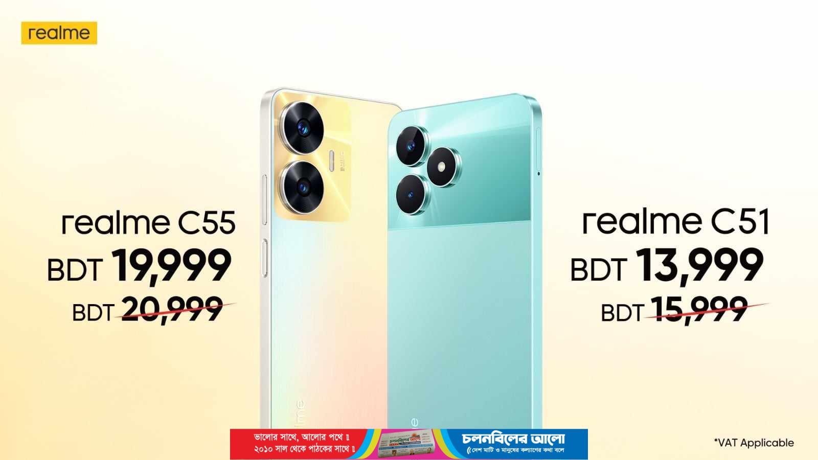 তরুণ প্রজন্মের পছন্দের ব্র্যান্ড রিয়েলমি আবারও ব্যবহারকারীদের জন্য নিয়ে এসেছে দুর্দান্ত অফার। এখন রিয়েলমি সি৫৫ (৬জিবি/১২৮জিবি) ফোন কেনা যাবে ১ হাজার টাকা ছাড়ে মাত্র ১৯ হাজার ৯৯৯ টাকায় (ভ্যাট প্রযোজ্য) এবং রিয়েলমি সি৫১ (৪জিবি/৬৪জিবি) ২ হাজার টাকা কমে মাত্র ১৩ হাজার ৯৯৯ টাকায় (ভ্যাট প্রযোজ্য)। অফারটি পরবর্তী ঘোষণা না দেওয়া পর্যন্ত চলবে।