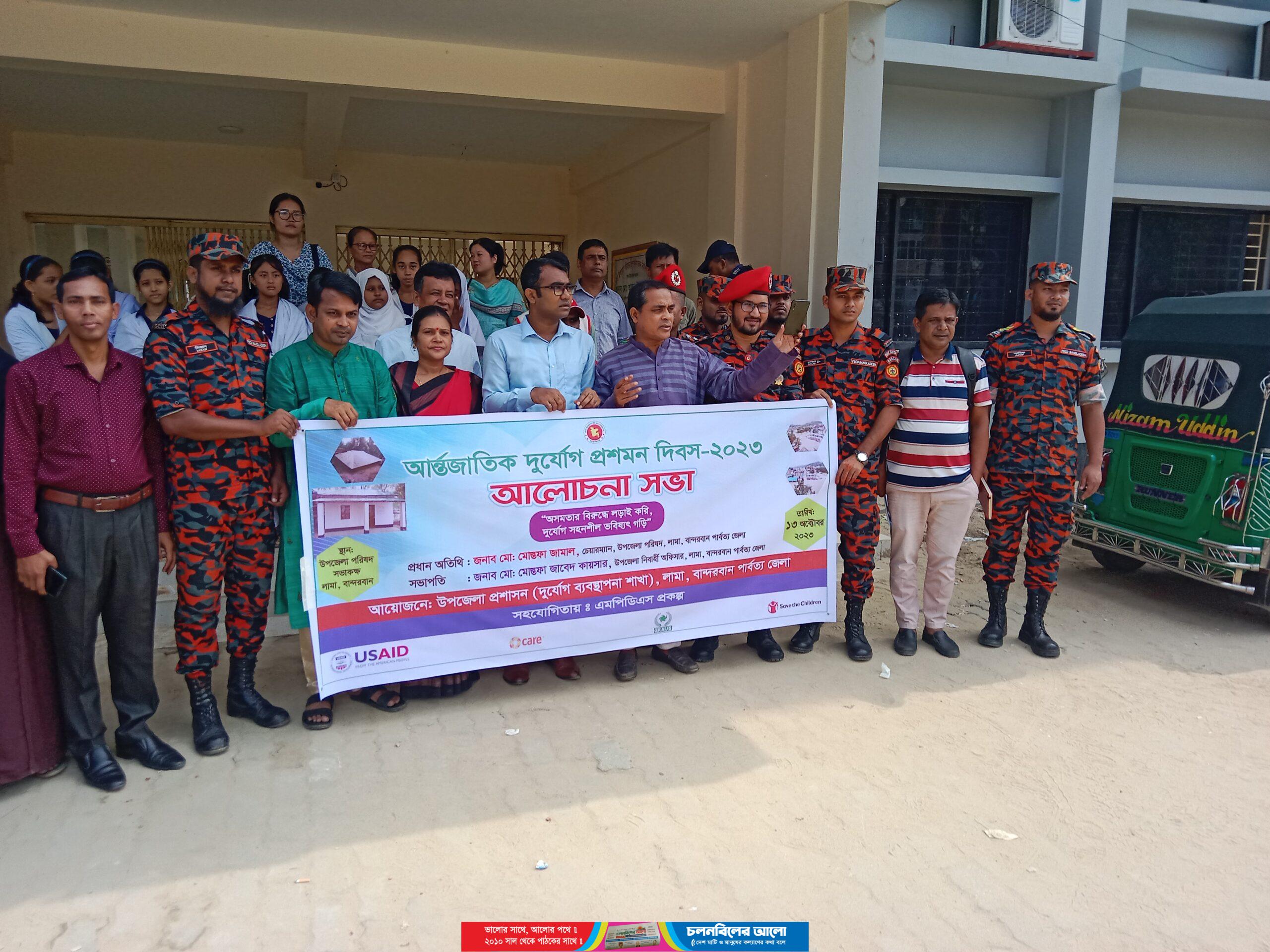“অসমতার বিরুদ্ধে লড়াই করি,দুর্যোগ সহনশীল ভবিষ্যৎ গড়ি” প্রতিপাদ্যকে সমুন্নত রেখে লামায় আন্তর্জাতিক দূর্যোগ প্রশমন দিবস২৩ ইং, উপলক্ষে র‍্যালি ও আলোচনা সভা অনুষ্ঠিত হয়েছে।  শুক্রবার (১৩ সেপ্টেম্বর) সকাল ১০ টায় লামা উপজেলা  উপজেলা প্রশাসন (দুর্যোগ ব্যবস্থাপনা শাখার) আয়োজনে লামা উপজেলা পরিষদ হলরুমে সবার অংশ গ্রহনে আলোচনা সভা অনুষ্ঠিত হয়।