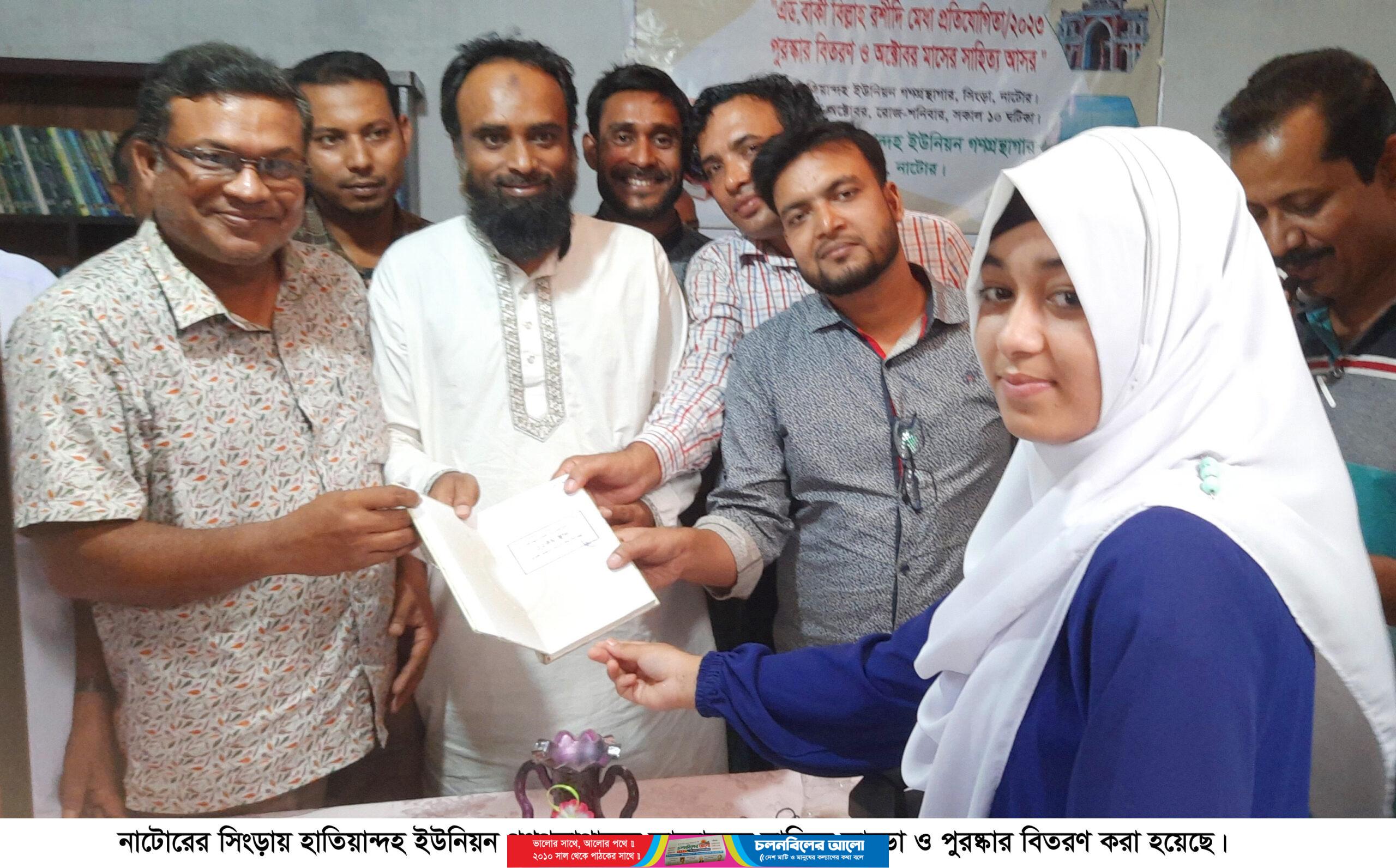 নাটোরের সিংড়ায় হাতিয়ান্দহ ইউনিয়ন গণগ্রন্থাগারের আয়োজনে নবীন-প্রবীণ, কবি-সাহিত্যিক ও লেখকদের নিয়ে সাহিত্য আড্ডা এবং স্কুল পর্যায়ে ছাত্র-ছাত্রীদের সাহিত্য মেধা প্রতিযোগিতায় বিজয়ীদের মাঝে পুরষ্কার বিতরণ করা হয়েছে।