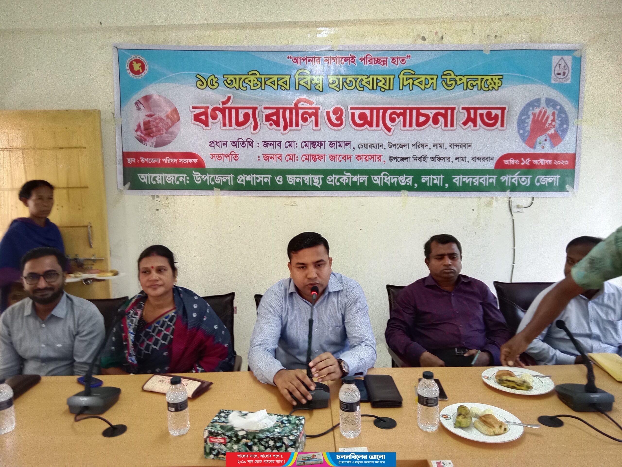 লামায় বিশ্ব হাতধোয়া দিবস উপলক্ষে র্যালি ও আলোচনা অনুষ্ঠিত হয়েছে। রোববার (১৫ সেপ্টম্বর) সকাল ১১ টায় লামা উপজেলা প্রশাসন ও জনস্বাস্থ্য প্রকৌশল অধিদপ্তরের আয়োজনে এ সময় উপজেলা চত্বর থেকে একটি র্যালি বের হয়ে পৌর শহরের বিভিন্ন সড়ক প্রদক্ষিণ করে। উপজেলা পরিষদ সভাকক্ষে উপজেলা নির্বাহী কর্মকর্তা মো. মোস্তফা জাবেদ কায়সার এর সভাপতিত্বে অনুষ্ঠিত আলোচনা সভার শুরুতে নিজেই হাত ধুয়ে সকলকে হাত ধুতে উদ্বুদ্ধ করেন।