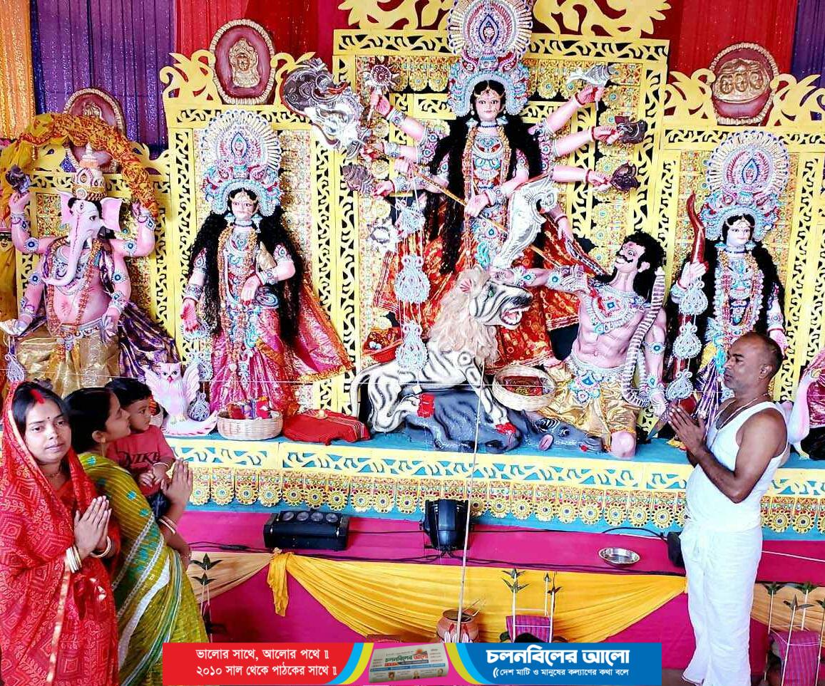 গতকাল রবিবার অষ্টমীতে ছিল কুমারী পুজা। সলঙ্গার প্রতিটি পুজা মন্ডপে অন্যান্য আয়োজনের সাথে আছে চন্ডিপাঠ। কঠোর নিরাপত্তার মধ্য দিয়ে চলছে সলঙ্গায় ৩২ টি মন্ডপে দুর্গাপুজা। প্রশাসন ও আইন প্রয়োগকারী কর্তৃপক্ষের তদারকি আর নজরদারির কেন কমতি নাই। তা ছাড়াও প্রতিটি পুজামন্ডপে রয়েছে তাদের নিজস্ব স্বেচ্ছাসেবক বাহিনী। প্রতিটি মন্ডপে কর্তব্যরত আনসার-পুলিশ রয়েছে তৎপর। পুজা অর্চনার পাশাপাশি পুজামন্ডপ এলাকাগুলো সেজেছে বর্ণিল আয়োজনে।অষ্টমী আর নবমীতে বেশির ভাগ মন্দিরে বিকেল হতে গভীর রাত পর্যন্ত দেখা যায় ভক্ত,পুণ্যার্থী আর দর্শনার্থীদের ঢল। কেউবা মোটর সাইকেল,কেউ আবার রিক্সা-ভ্যান রিজার্ভ করে স্ত্রী- সন্তান আপনজনদের নিয়ে ছুটছে এক মন্দির থেকে আরেক মন্ডপে।সলঙ্গায় এবারেও তার ব্যতিক্রম ঘটেনি। সব বয়সের নারী-পুরুষসহ সকল ধর্মের মানুষের পদচারনা ছিল মন্ডপগুলোতে।সলঙ্গা উত্তরপাগা জগন্নাথ মন্দির সহ কিছু পুজামন্ডপ এলাকায় বসেছে দোকান পাট।আজ সোমবার মহানবমী এবং আগামীকাল মঙ্গলবার বিজয়া দশমী ও প্রতিমা বিসর্জনের মধ্য দিয়ে শেষ হবে সনাতন ধর্মালম্বীদের শারদীয় দুর্গোৎসব।