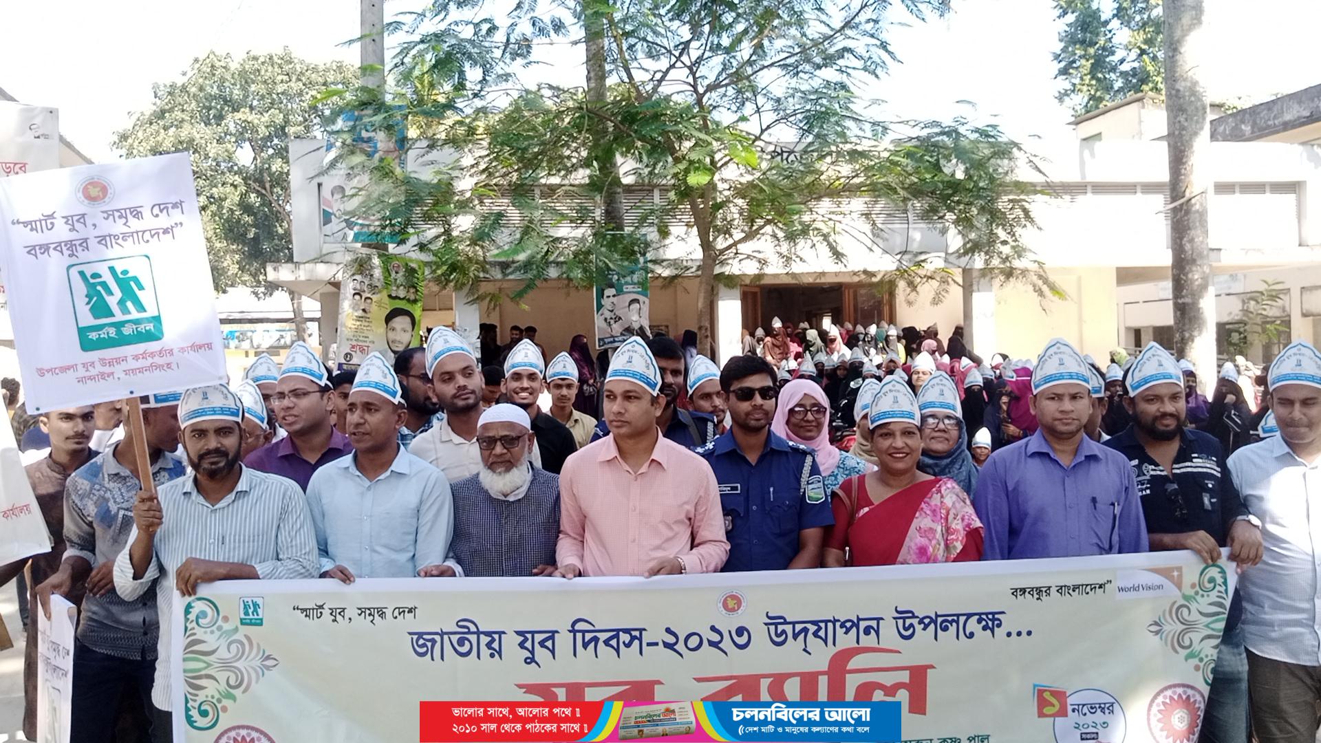 নান্দাইলে জাতীয় যুব দিবস উপলক্ষে, উপজেলা প্রশাসন ও উপজেলা যুব কার্যালয়ের আয়োজনে,যুব ঋণের চেক ও সনদপত্র বিতরন সহ আলোচনা সভা বুধবার(১লা নভেম্বর)উপজেলা হল রুমে অনুষ্ঠিত হয়।যুব দিবস উপলক্ষে একটি র্যালী উপজেলা চত্বর ও উপজেলা কেন্দ্রেীয় শহীদ মিনার চত্বর পদক্ষিণ শেষে আলোচনা সভায় এসে মিলিত হয়।