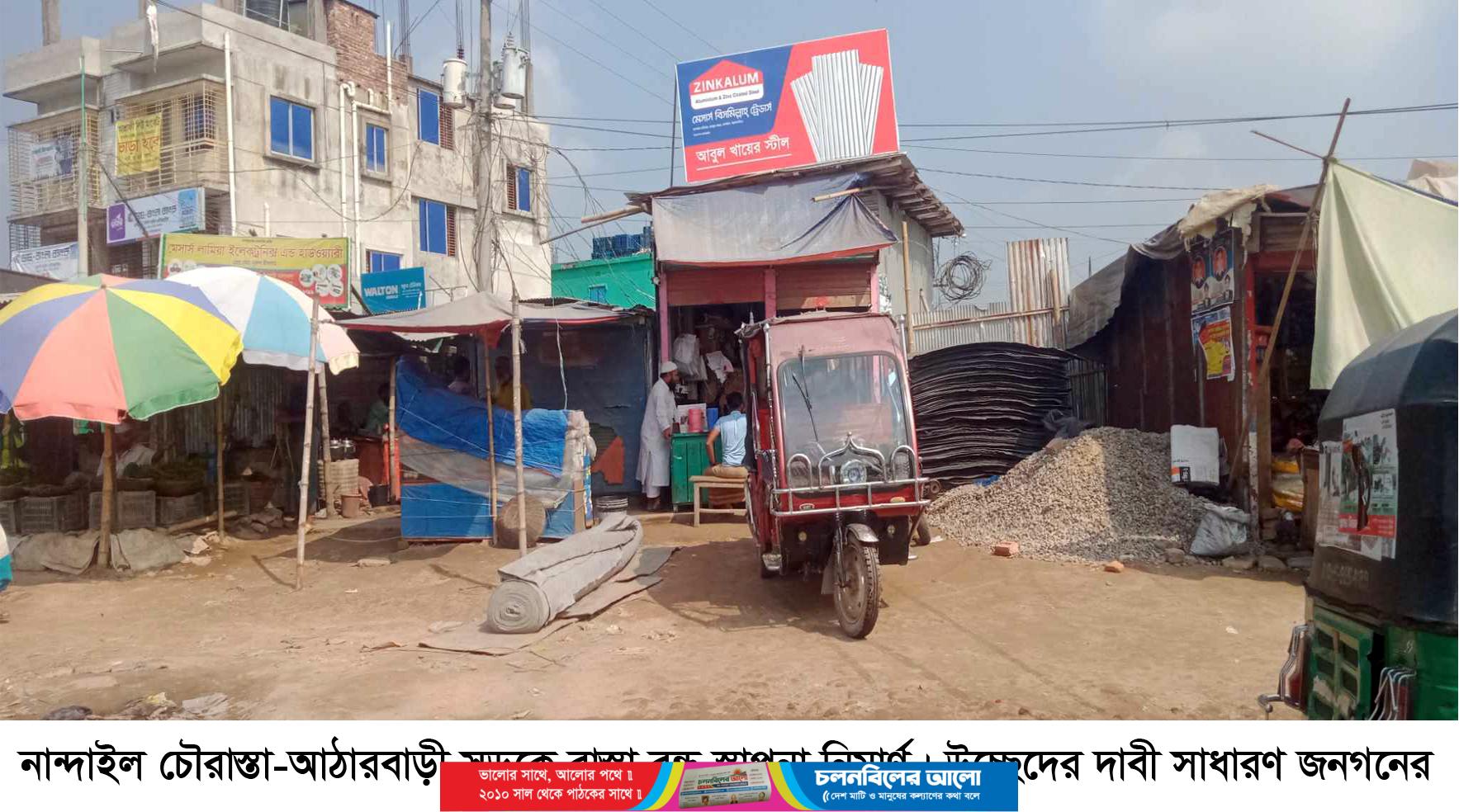 নান্দাইল চৌরাস্তা-আঠারবাড়ী সড়কে অবৈধ স্থাপনা উচ্ছেদের দাবী