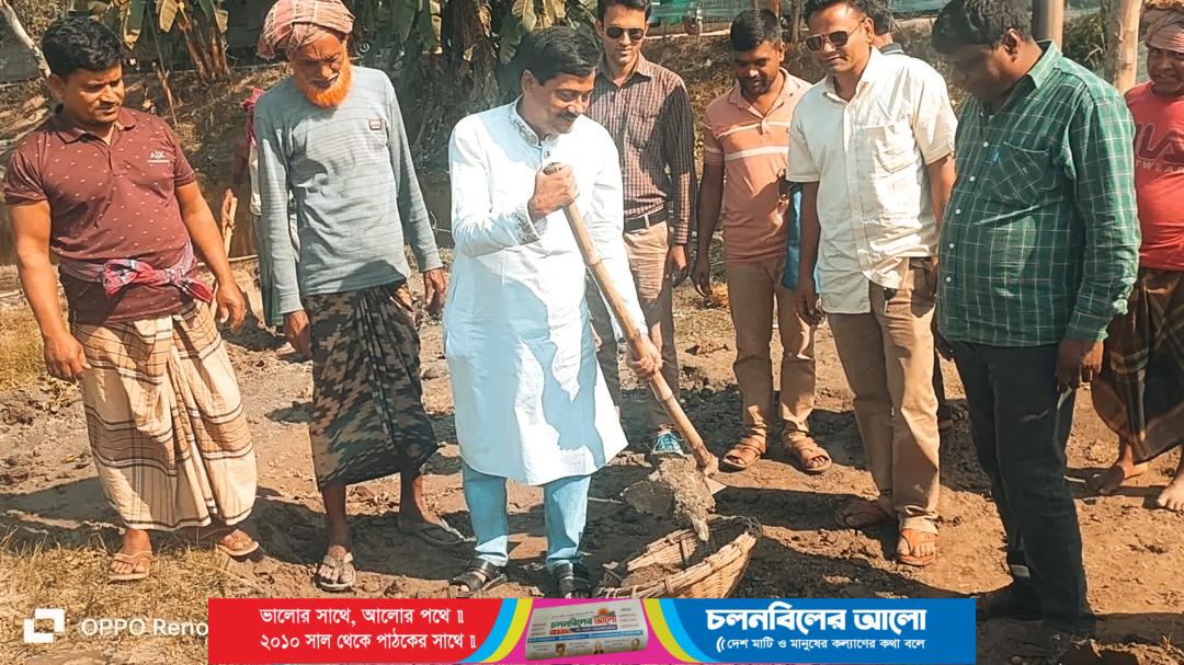 উল্লাপাড়া সলপ ইউনিয়নে মাটির রাস্তার কাজ উদ্বোধন করেন শওকাত ওসমান