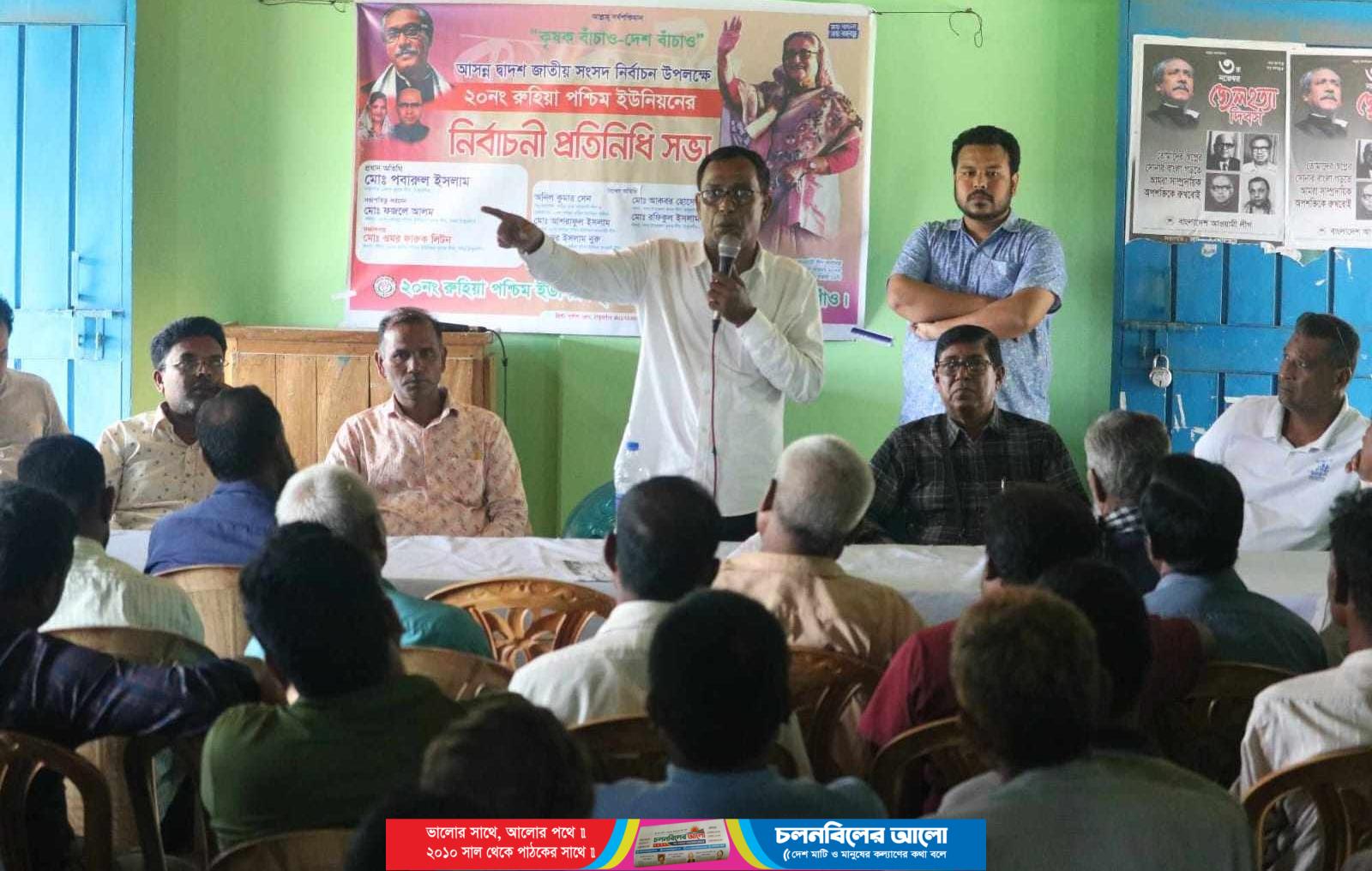 বুধবার দুপুরে রুহিয়া থানা আওয়ামী লীগ কার্যালয়ে এ সভা অনুষ্ঠিত হয়।নির্বাচনী প্রতিনিধি সভায় সকলে নৌকা মার্কার জয় নিশ্চিত এবং বাংলাদেশ আওয়ামী লীগ সরকারকে আবারো বেলট বিপ্লবে বিজয় নিশ্চিত করে ক্ষমতায় আনার জন্য সকলকে ঐক্য বদ্ধ থাকার আহবান জানান বক্তারা। ইউনিয়ন কৃষক লীগের সদস্য ফজলে আলমের সভাপতিত্ব ও সদস্য সচিব ওমর ফারুক লিটনের সঞ্চালনায় অনুষ্ঠানে উপস্থিত ছিলেন,ঠাকুরগাঁও জেলা কৃষক লীগের সভাপতি জনাব পবারুল ইসলাম ,থানা আওয়ামীলীগের সহ-সভাপতি ও ইউনিয়ন পরিষদ চেয়ারম্যান অনিল কুমার সেন, থানা আওয়ামী লীগের সহ দপ্তর সম্পাদক গনেশ চন্দ্র সেন, ইউনিয়ন আওয়ামীলীগের সাধারণ সম্পাদক নূর ইসলাম নুরু, ঠাকুরগাঁও জেলা আওয়ামী যুবলীগ সদস্য শাহ জালাল প্রমুখ।