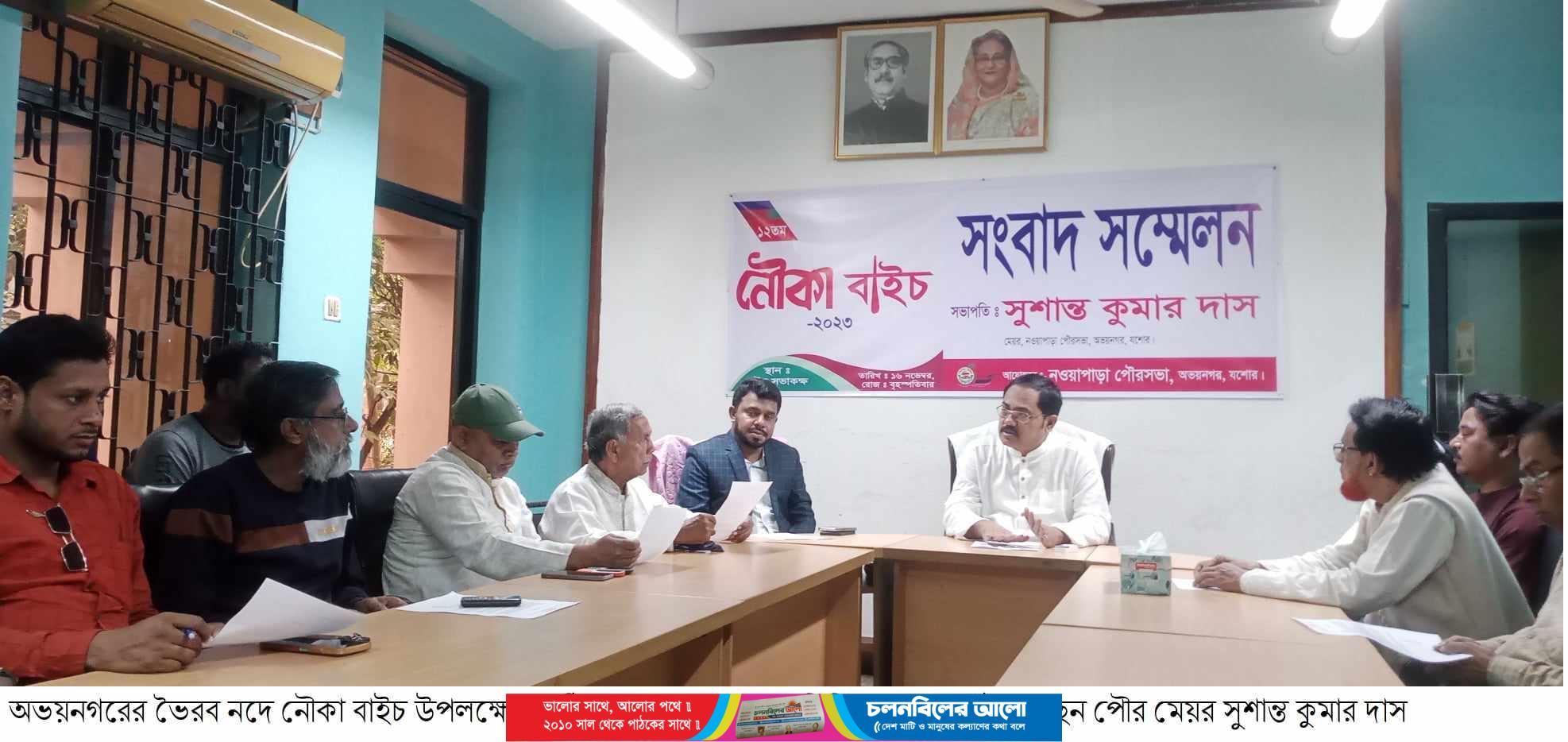 যশোরের অভয়নগরে আগামীকাল ভৈরব নদে (১৭ নভেম্বর) শুক্রবার ঐতিহ্যবাহী বার্ষিক ১২তম নৌকা বাইচ অনুষ্ঠিত হবে। নওয়াপাড়া পৌরসভার সভা কক্ষে এক সংবাদ সম্মেলনে এ কথা জানান বার্ষিক নৌকা বাইচ পরিচালনা কমিটির সভাপতি ও নওয়াপাড়া পৌরসভার মেয়র সুশান্ত কুমার দাস শান্ত। ১৬ নভেম্বর (বৃহস্পতিবার) বেলা সাড়ে ১১ টায় অনুষ্ঠিত সংবাদ সম্মেলনে লিখিত বক্তব্যে পৌর মেয়র বলেন, নওয়াপাড়া পৌরসভার আয়োজনে ও আফিল গ্রুপের পৃষ্ঠপোষকতায় বার্ষিক নৌকা বাইচের ১২তম আসরে প্রধান অতিথি হিসেবে উপস্থিত থেকে বিজয়ীদের মাঝে পুরস্কার বিতরণ করবেন যশোরের জেলা প্রশাসক আবরাউল হাছান মজুমদার। তিনি আরও বলেন,অভয়নগরের মানুষের সুস্থ বিনোদনের জন্য ও গ্রাম বাংলার ঐতিহ্য ধরে রাখার লক্ষ্যে প্রতি বছর পৌরসভার আয়োজনে এ নৌকা বাইচ অনুষ্ঠিত হয়।