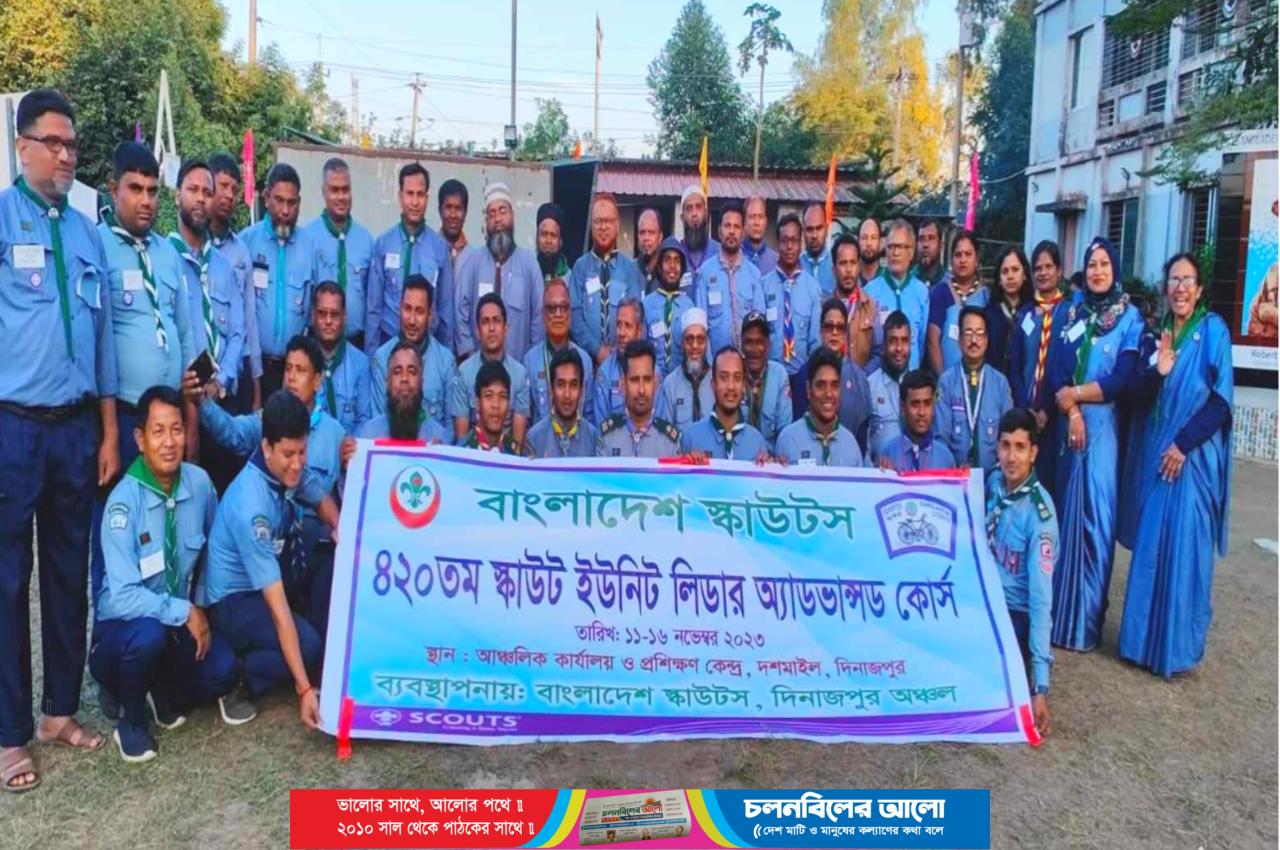 উল্লেখ যে, স্কাউটিং কার্যক্রমকে আরো বেগবান করা এবং প্রশিক্ষণ স্কীমের অংশ হিসেবে বাংলাদেশ স্কাউটস দিনাজপুর অঞ্চলের আয়োজনে গত ১১ নভেম্বর থেকে শুরু হয় ৪২০ তম স্কাউট ইউনিট লিডার অ্যাডভান্সড কোর্স। রংপুর বিভাগের প্রতিটি জেলার বিভিন্ন শিক্ষা প্রতিষ্ঠান হতে মোট ৩৮ জন ইউনিট লিডার প্রশিক্ষণার্থী হিসেবে এ কোর্সে অংশগ্রহণ করেন। স্কাউটিংয়ের অন্যতম ও গুরুত্বপূর্ণ একটি প্রোগ্রাম হলো মহাতাবু জলসা। গতকাল সন্ধ্যায় কোর্সের ওই মহাতাবু জলসা অনুষ্ঠিত হয়।  ১৬ নভেম্বর দুপুরে আনুষ্ঠানিক ভাবে স্কাউট পতাকা নামানো এবং প্রশিক্ষণাথীদের মাঝে সনদ পত্র বিতরণের মাধ্যমে কোর্সের সমাপ্তি করা হয়৷