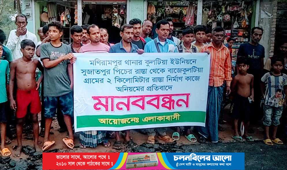 রাস্তা সংস্কারে ব্যাপক অনিয়মের বিরুদ্ধে এলাকাবাসীর মানববন্ধন