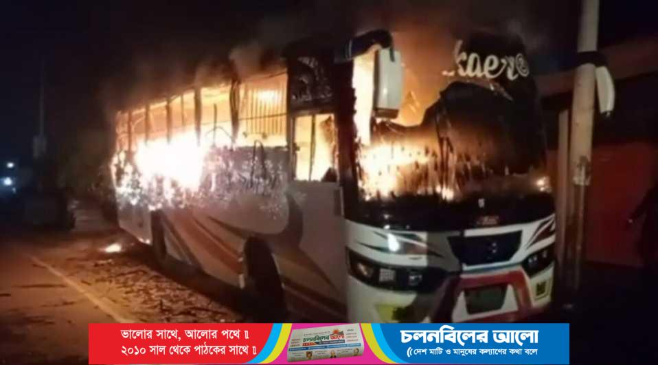 টাঙ্গাইলে দাঁড়িয়ে থাকা বাসে দুর্বৃত্তদের আগুন