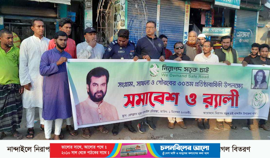 নান্দাইলে নিরাপদ সড়ক চাই ৩০তম প্রতিষ্ঠা উপলক্ষে আলোচনা সভা, র্যালী ও ছাগল বিতরণ