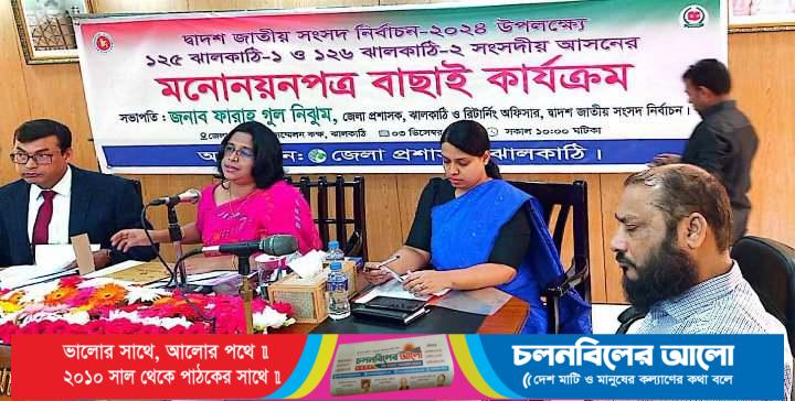 ঝালকাঠি দু’টি আসনে (১২৫ ও ১২৬) মনোনয়ন ৭জনের বাতিল ও ৮জনের বৈধ হয়েছে। রবিবার (৩ ডিসেম্বর) সকাল ১০টায় জেলা প্রশাসক সম্মেলন কক্ষে রিটার্নিং অফিসার জেলা প্রশাসক ফারাহ গুল নিঝুম যাচাই বাচাই শেষে বৈধ প্রার্থীদের নাম ঘোষনা করেন এবং ত্রুটিপূর্ণ মনোনয়ন বাতিল করেন। এসময় উপস্থিত ছিলেন পুলিশ সুপার মোহাম্মদ আফরুজুল হক টুটুল, জেলা নির্বাচন কর্মকর্তা মোহা: আ: ছালেক, অতিরিক্ত জেলা ম্যাজিস্ট্রেট সাজিয়া আফরোজ, জেলা পরিষদ চেয়ারম্যান ও জেলা আওয়ামীলীগের সাধারণ সম্পাদক এড. খান সাইফুল্লাহ পনির, সদর উপজেলা চেয়ারম্যান খান আরিফুর রহমান, নলছিটি উপজেলা চেয়ারম্যান মো: সিদ্দিক হোসেন, পৌর মেয়র আলহাজ্ব মো: লিয়াকত আলী তালুকদার, আইনজীবি সমিতির সভাপতি আ: মান্নান রসুল, সুপ্রিমকোর্টের আইনজীবি মো: কাওসার হোসেনসহ বিভিন্ন মিডিয়ার সাংবাদিকবৃন্দ। রিটার্নিং অফিসার  ঝালকাঠি-০১ (রাজাপুর-কাঠালিয়া) আসনে মনোনয়ন বৈধ ঘোষনা করেন ব্যারিষ্টার শাহজাহান ওমর বীর উত্তম (নৌকা), মামুন সিকদার (সাংস্কৃতিক জোট), জসিম উদ্দিন তালুকদার (তৃনমূল বিএনপি), আবুবকর সিদ্দিক (জাকের পার্টি), মুজিবর রহমান মৃধা (স্বতন্ত্র)।