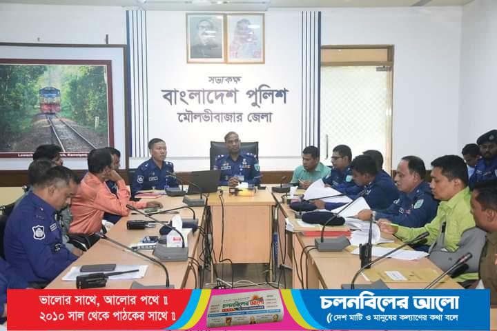 মৌলভীবাজার জেলা পুলিশের মাসিক অপরাধ পর্যালোচনা সভা অনুষ্ঠিত হয়েছে। আজ ৯ ডিসেম্বর শনিবার দুপুর ০২.০০ ঘটিকায় পুলিশ সুপারের কার্যালয়ের সম্মেলন কক্ষে অতিরিক্ত পুলিশ সুপার (প্রশাসন ও অর্থ) সুদর্শন কুমার রায়ের (পুলিশ সুপার পদে পদোন্নতি প্রাপ্ত) সঞ্চালনায় মাসিক অপরাধ পর্যালোচনা সভা অনুষ্ঠিত হয়।