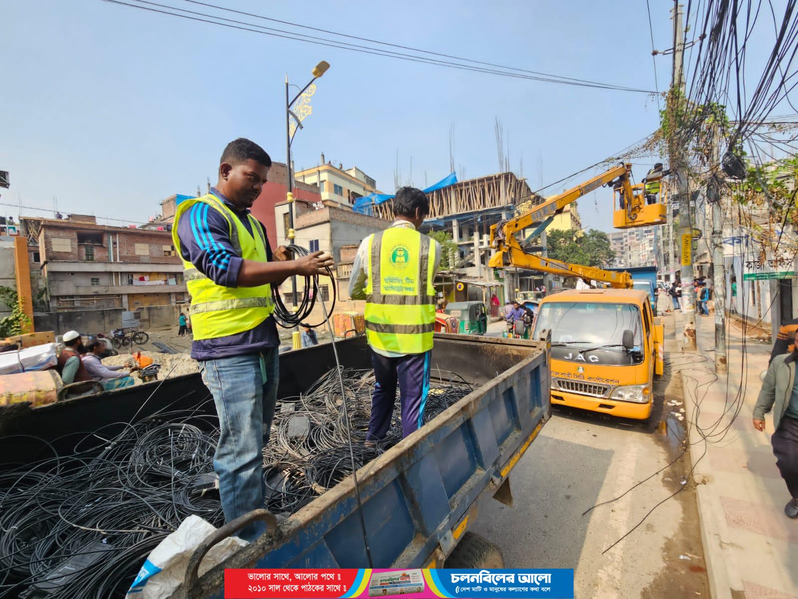 ইন্টারনেট ও ডিস লাইনের অতিরিক্ত তারের জঞ্জাল অপসারণে রাজশাহী সিটি কর্পোরেশনের ভ্রাম্যমান আদালতের অভিযান পরিচালিত হয়েছে।