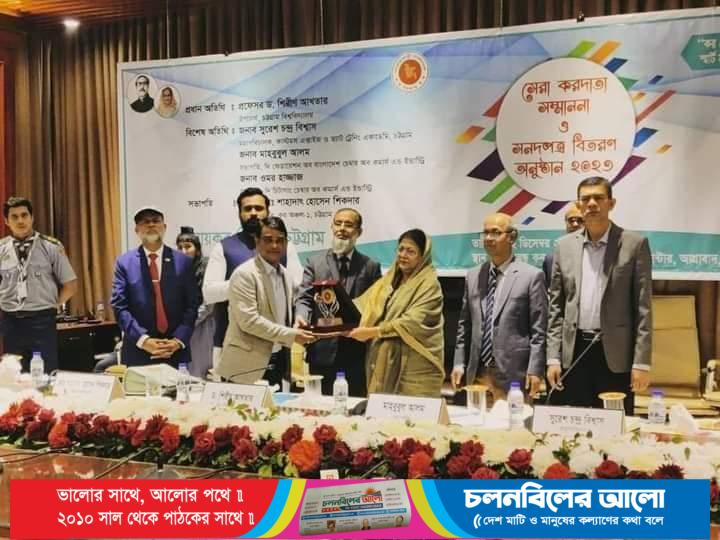 চট্টগ্রাম জেলা,খাগড়াছড়ি, রাঙামাটি, বান্দরবান ও কক্সবাজারে ২০২২-২৩ করবর্ষে চার ক্যাটাগরিতে ৪২ জন সেরা করদাতাকে সম্মাননা জানানো হয়েছে মঙ্গলবার (১২ ডিসেম্বর)আগ্রাবাদের ওয়ার্ল্ড সেন্টারের বঙ্গবন্ধু কনফারেন্স হলে সকাল সাড়ে ১০টায় আনুষ্ঠানিকভাবে সম্মাননা স্মারক ও সনদ তুলে দেওয়া হয় ।