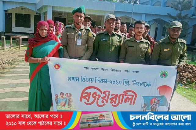 আজ ১৬ই ডিসেম্বর শনিবার ভোরে সদর উপজেলার খলিলপুর ইউনিয়ন আনসার-ভিডিপির উদ্যোগে বিজয় দিবস উপলক্ষে ১নং খলিলপুর ইউনিয়নের সকল আনসার ভিডিপির সদস্য এবং সদস্যাদের নিয়ে র্যালি ও আলোচনা সভার আয়োজন করা হয়।