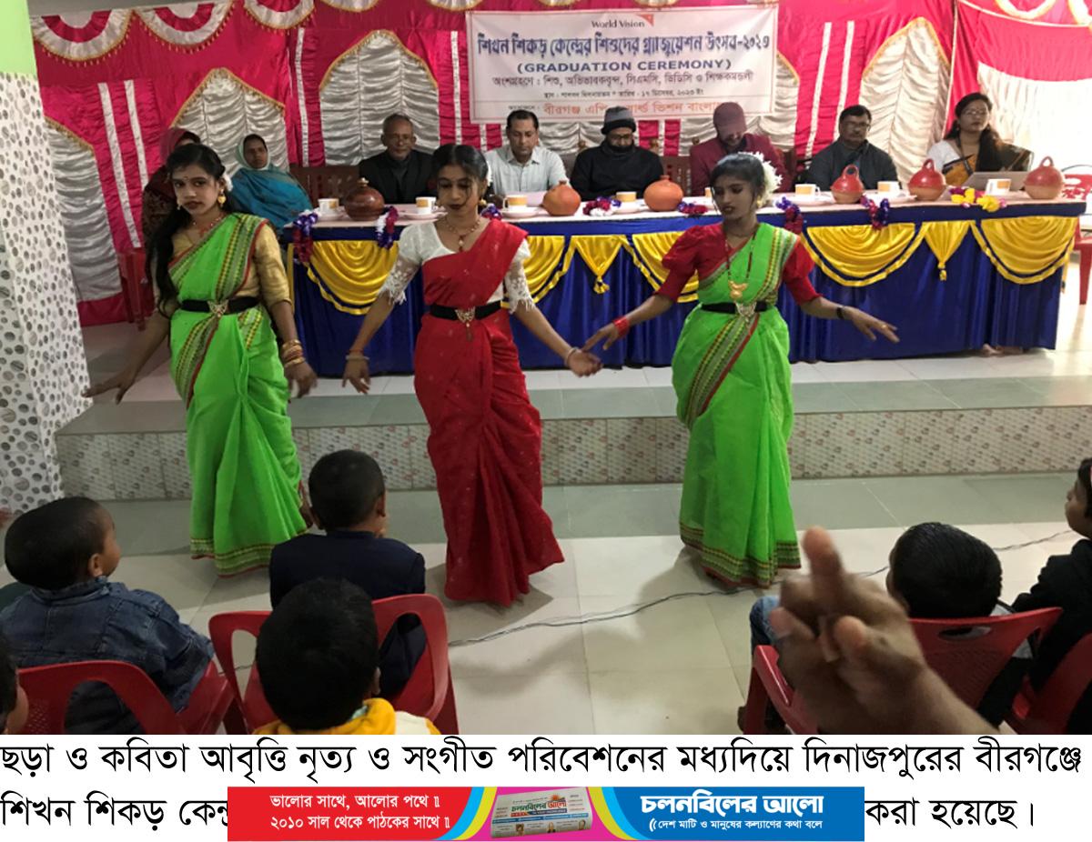 ওয়ার্ল্ড ভিশন বাংলাদেশ বীরগঞ্জ এপির সহযোগিতায় রবিবার দিনব্যাপী বীরগঞ্জ শালবন মিলনায়তনে লার্নিং রুটস শিশুদের নিয়ে উক্ত গ্রাজুয়েশন উৎসব পালন করা হয়।