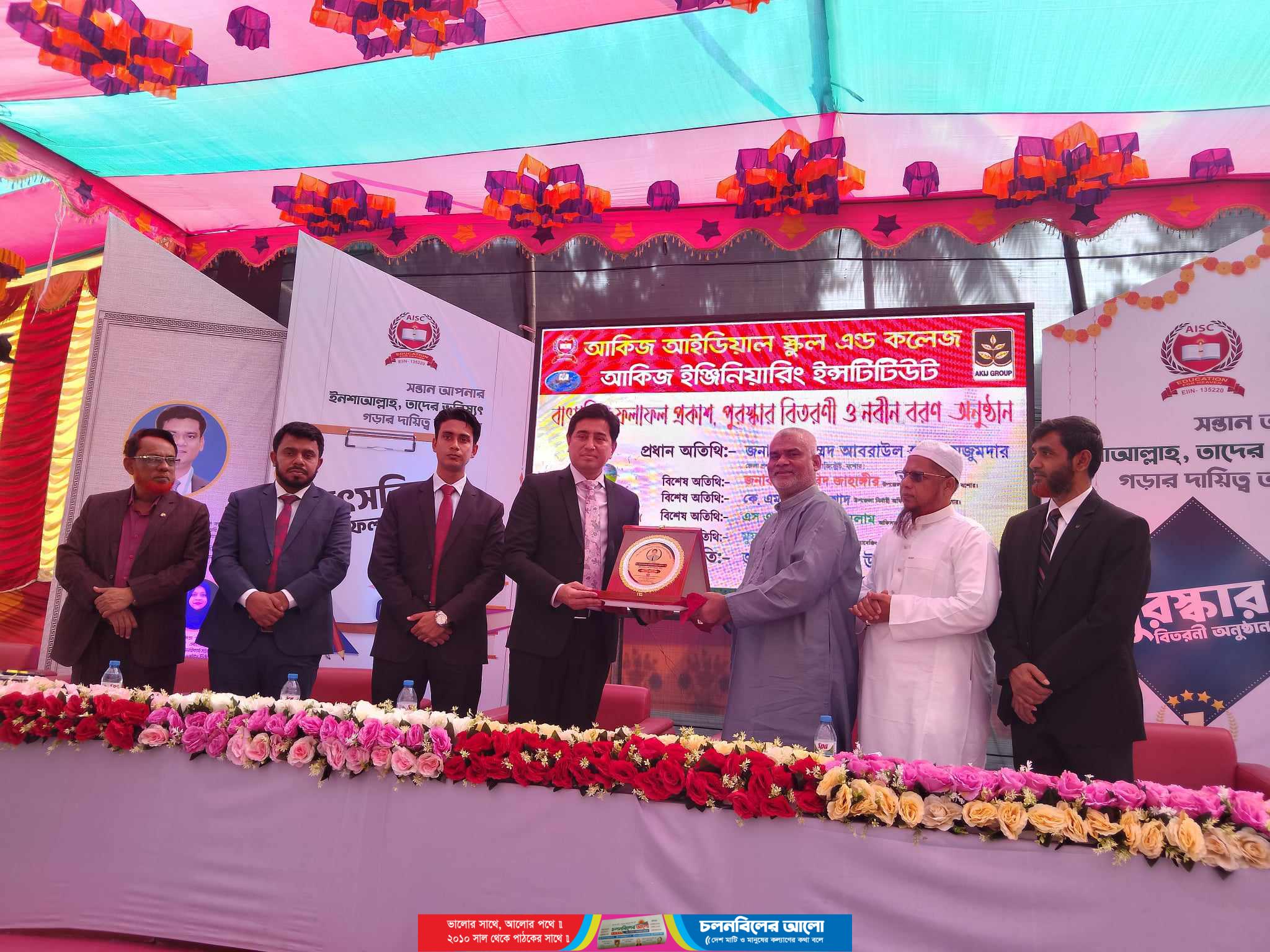 আকিজ আইডিয়াল স্কুল এন্ড কলেজ ও আকিজ ইন্জিনিয়ারিং ইন্সটিটিউটের বার্ষিক ফলাফল প্রকাশ,পুরষ্কার বিতরণী ও নবীন বরন অনুষ্ঠান অনুষ্ঠিত হয়েছে। মঙ্গলবার বেলা ১১ টায় নওয়াপাড়া আকিজ সিটিতে অবস্থিত আকিজ আইডিয়াল স্কুল এন্ড কলেজের চত্বরে এ অনুষ্ঠান অনুষ্ঠিত হয়। আকিজ গ্রুপের চেয়ারম্যান ও আকিজ আইডিয়াল স্কুল এন্ড কলেজের প্রধান উপদেষ্টা সেখ নাসির উদ্দীন (সিআইপি) এর সভাপতিত্বে প্রধান অতিথির বক্তব্য রাখেন যশোর জেলা প্রশাসক ও জেলা ম্যাজিস্ট্রেট মোহাম্মদ আবরাউল হাছান মজুমদার। বিশেষ অতিথি হিসেবে বক্তব্য রাখেন উপজেলা নির্বাহী অফিসার কেএম আবু নওশাদ, অধ্যক্ষ মাহমুদুন নবী,ভাইস প্রিন্সিপাল সৈয়দ আরাফাত হোসেন তাজ, অভিভাবক সদস্য আবু জাফর।এসময় উপস্থিত ছিলেন সহকারী কমিশনার ভূমি থান্দার কামরুজ্জামান, এস এ ইন্টারন্যাশনাল ম্যানেজিং ডাইরেক্টর মুফতি আহমেদ আলী, নওয়াপাড়া প্রেসক্লাবের সভাপতি নজরুল ইসলাম মল্লিক, থানার ওসি তদন্ত শুভ্র প্রকাশ দাস, দৈনিক নওয়াপাড়া পত্রিকার সম্পাদক ও প্রকাশক সাজিদ হোসেন সুপ্ত, আকিজ জুট মিলের ব্যবস্থাপক এ্যাডমিন সুব্রত শর্মা, ডেপুটিম্যানেজার ফুয়াদ আদনান,ইনভেস্টিগেশন ম্যানেজার মাসুম বিল্লাহ, নওয়াপাড়া প্রেসক্লাবে দফতর সম্পাদক শাহীন আহমেদ, ক্রীড়া সম্পাদক এম এম আলাউদ্দিন, তথ্য ও প্রযুক্তি বিষয়ক সম্পাদক তারিম আহমেদ ইমন, কাউন্সিলর রেজাউল ইসলাম রেজা, ফায়ার সার্ভিসের সিভিল ডিফেন্স স্টেশন অফিসার আলাউদ্দিন, নওয়াপাড়া শিল্প অঞ্চল পুলিশের ওসি মাইনুল ইসলাম।অনুষ্ঠান পরিচালনা করেন কো অর্ডিনেটর আলাত শামস। অনুষ্ঠান শেষে প্রধান অতিথির হাত থেকে শিক্ষার্থীরা পুরষ্কার গ্রহণ করে।