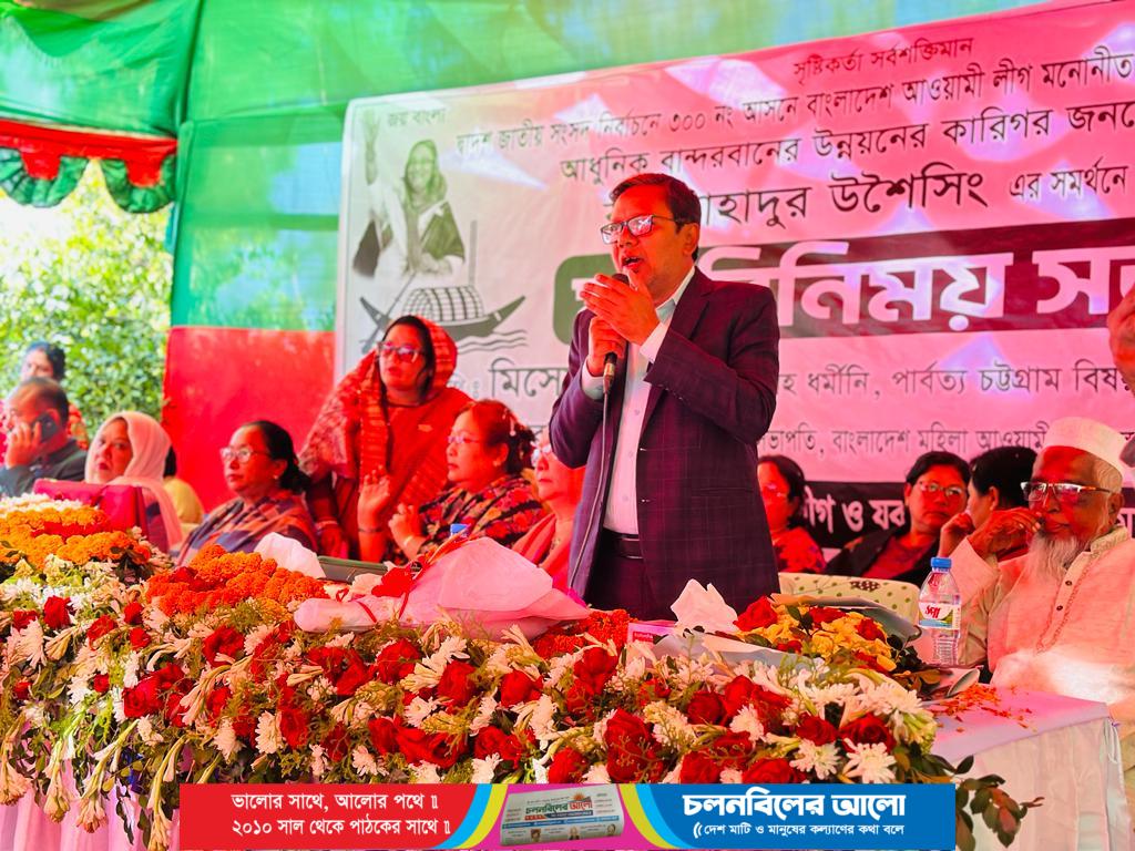 আসন্ন দ্বাদশ জাতীয় সংসদ নির্বাচনে ৩০০ নং আসনে বাংলাদেশ আওয়ামী মনোনীত সাংসদ সদস্য পদপ্রার্থী আধুনিক বান্দরবানের উন্নয়নের কারিগর জননেতা বীর বাহাদুর উশৈসিং এর সমর্থনে তথা নৌকা মার্কার পক্ষে মতবিনিময় সভা অনুষ্ঠিত হয়েছে। মঙ্গলবার (১৯ ডিসেম্বর)  বিকালে লামা পৌরসভাস্থ বীর বাহাদুর কাননে লামা উপজেলা মহিলা ও যুব মহিলা লীগের আয়োজনে এ সময় প্রধান অতিথি হিসেবে অংশ নেন পার্বত্য চট্টগ্রাম বিষয়ক মন্ত্রণালয়ের মন্ত্রী বীর বাহাদুর (উশৈসিং) এমপির সহধর্মিণী মিসেস মেহ্লা প্রু মার্মা।