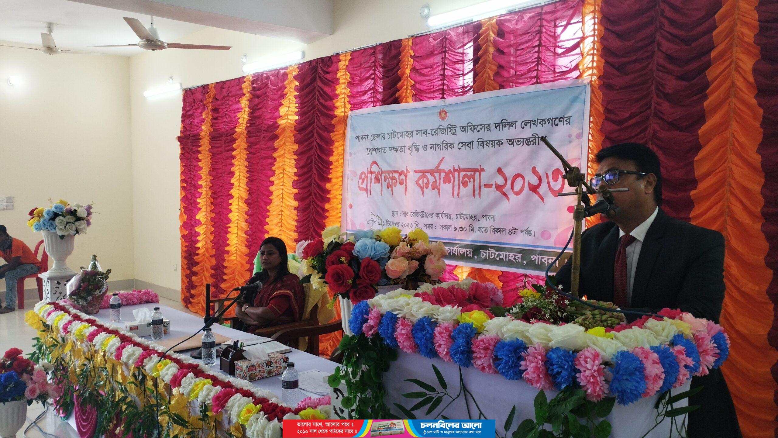 পাবনার চাটমোহর সাবরেজিস্ট্রার অফিসের সনদপ্রাপ্ত দলিল লেখকগণের পেশাগত দক্ষতা বৃদ্ধি ও নাগরিক সেবা বিষয়ক প্রশিক্ষন কর্মশালা অনুষ্ঠিত হয়েছে।